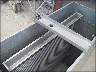 Enfriador de placas de acero inoxidable Chester-Jensen Co. Tamaño: A-4-1. Tipo: 32. (1) Dimensiones de la placa: 5 pies 1-1/2 pulgadas de largo x 3 pies 9-1/2 pulgadas de ancho. 32 corrugaciones. Dimensiones de la bandeja de agua perforada: 4 pies 10 pulgadas de largo x 4 pulgadas de ancho x 4 pulgadas de profundidad. Dimensiones: 6 pies 1 pulg. de largo x 2 pies 4 pulg. de ancho x 6 pies de alto. Entradas/salidas interiores: (1) puerto de 2 pulg. (1) MNPT de 2 pulg. (1) Línea S de 1-1/2 pulg. (1) 1-3/8 pulg. FNPT. (1) 1-1/4 pulg. FNPT. Dimensiones totales: 7 pies 4 pulgadas de largo x 2 pies 4-3/8 pulgadas de ancho x 7 pies 2-5/8 pulgadas de alto.