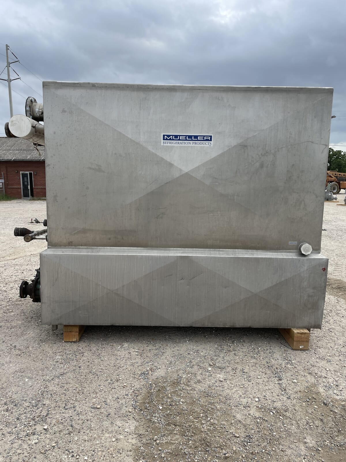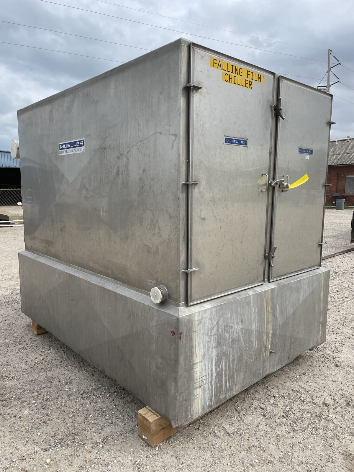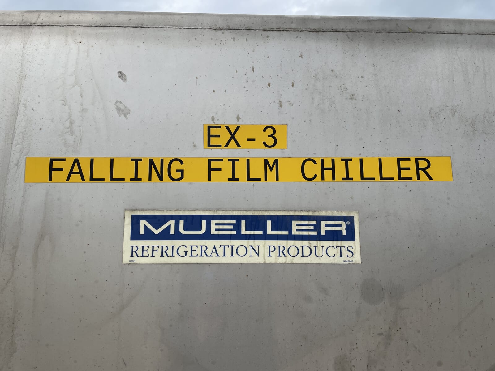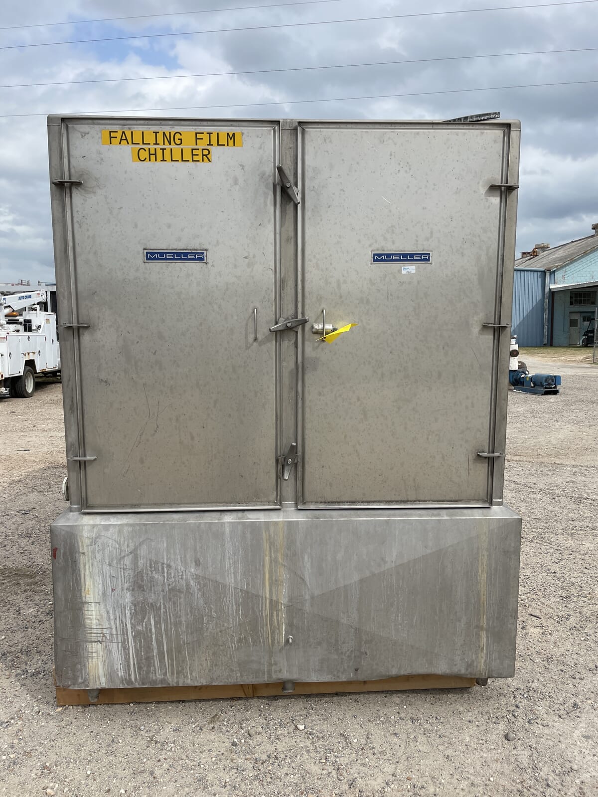Enfriador de película descendente Mueller - Tamaño (galones) - Modelo: 706 FFC, número de serie: 265329-1. Capacidad del depósito: 706 galones. El enfriador de película descendente de tipo cerrado Mueller 4 x 8 está completamente cerrado para garantizar que el producto esté libre de partículas en el aire y sea fácilmente accesible a través de puertas con juntas. Número de placas Capacidad máxima: 16. Información de transferencia de calor: presión de diseño: 250 PSI, temperatura de diseño: 200 F, presión de prueba: 331 PSI, volumen: 6,72 pies cúbicos.