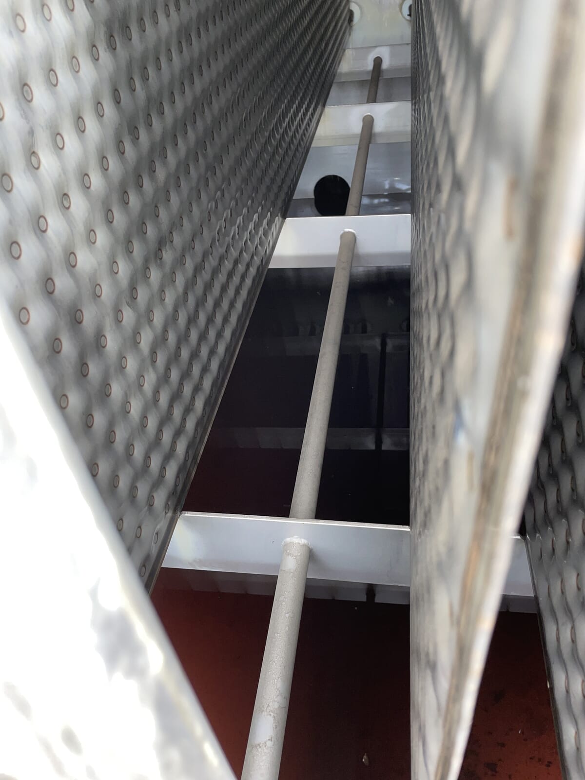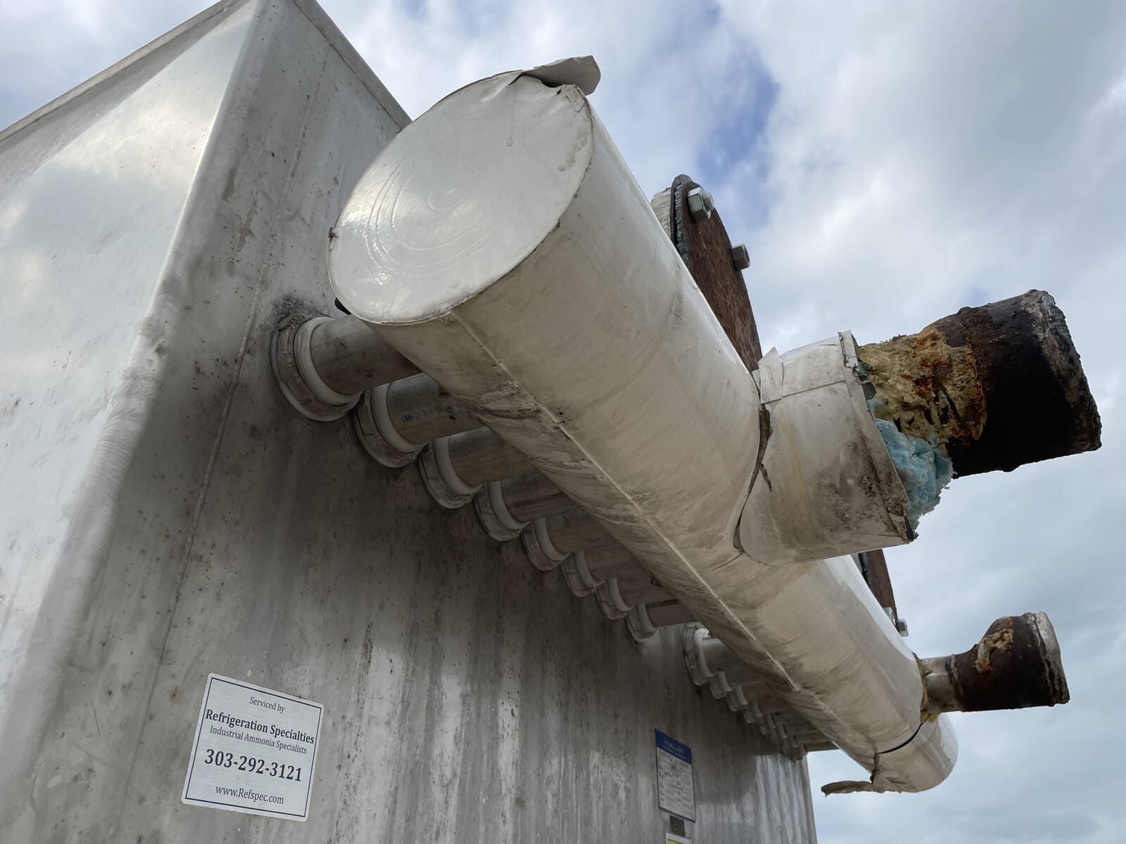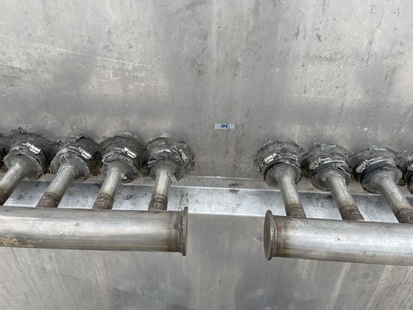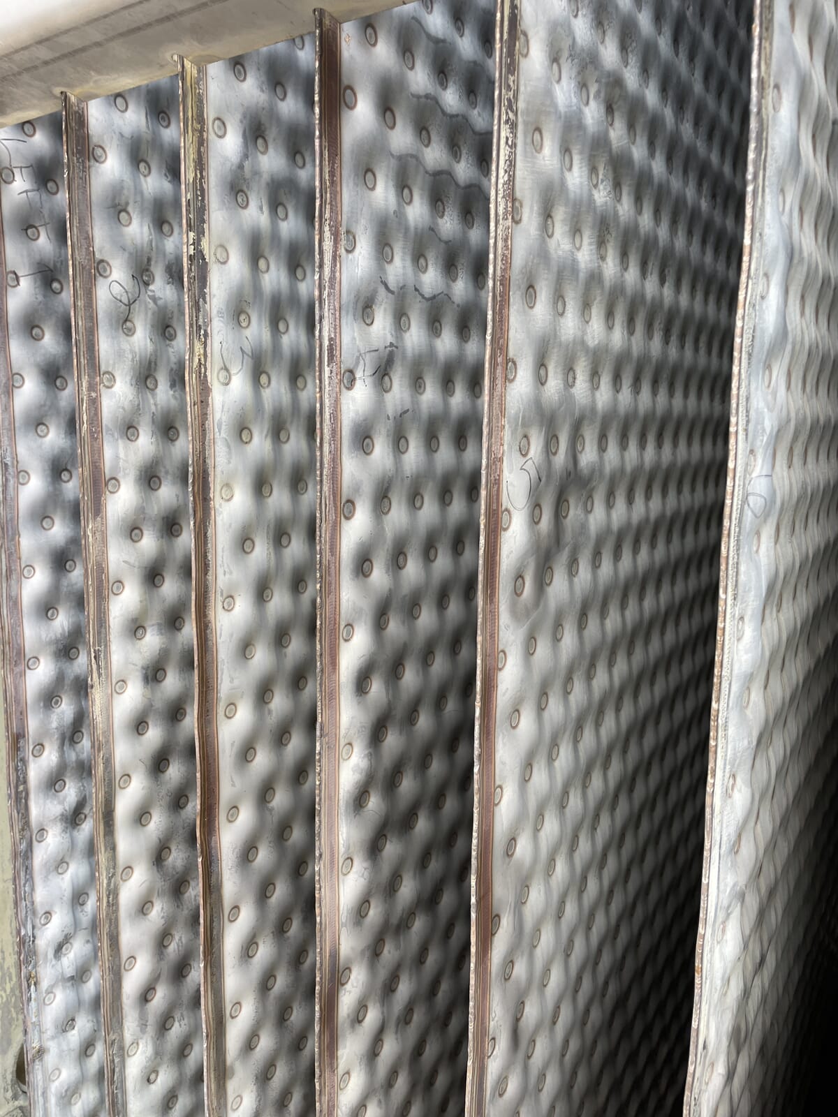 Enfriador de película descendente Mueller - Tamaño (galones) - Modelo: 706 FFC, número de serie: 265329-1. Capacidad del depósito: 706 galones. El enfriador de película descendente de tipo cerrado Mueller 4 x 8 está completamente cerrado para garantizar que el producto esté libre de partículas en el aire y sea fácilmente accesible a través de puertas con juntas. Número de placas Capacidad máxima: 16. Información de transferencia de calor: presión de diseño: 250 PSI, temperatura de diseño: 200 F, presión de prueba: 331 PSI, volumen: 6,72 pies cúbicos.