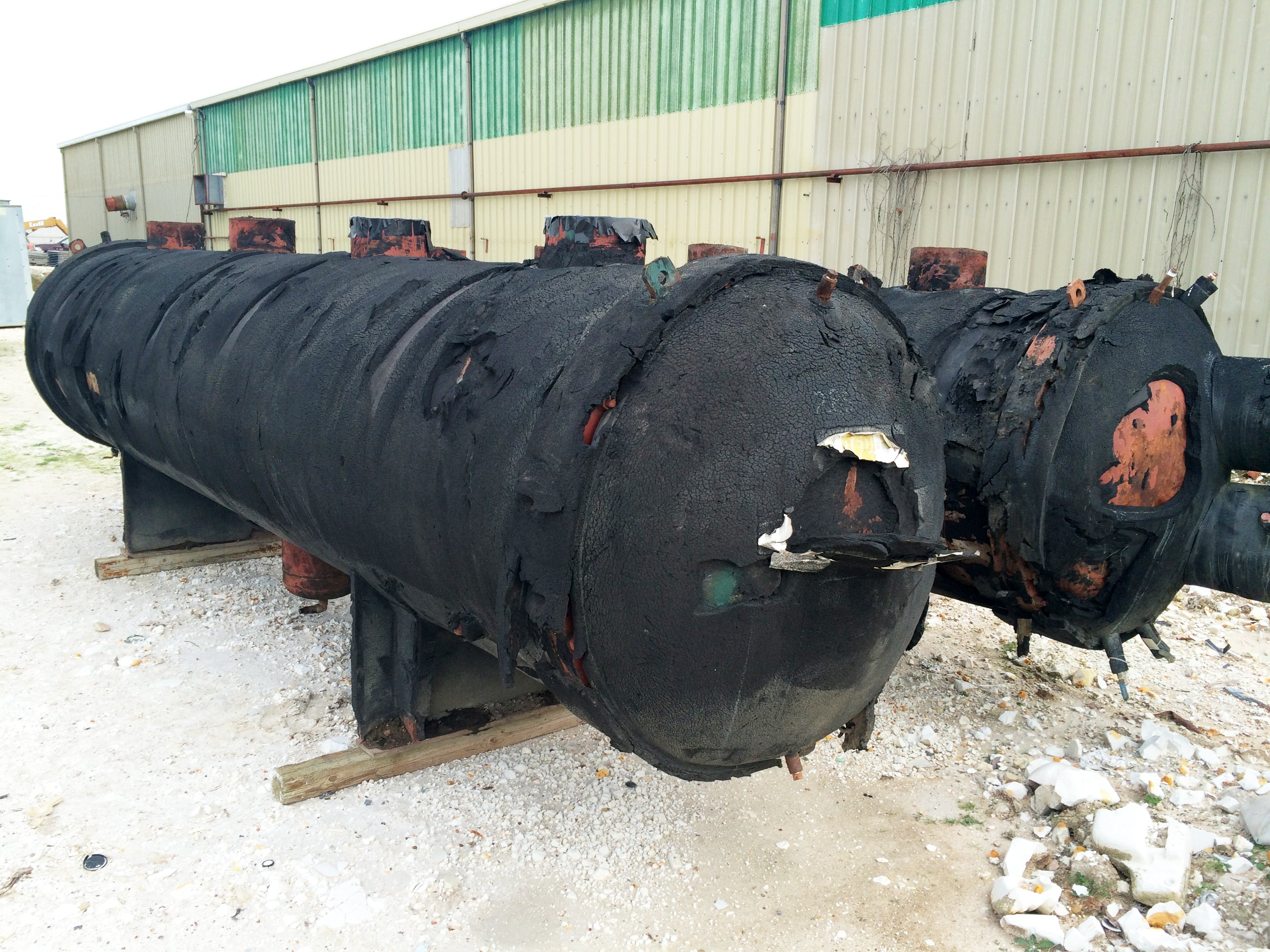 - Problemas o problemas conocidos: Nameplates are mssing. Top mounted ammonia surge drum was removed from the heat exchanger.