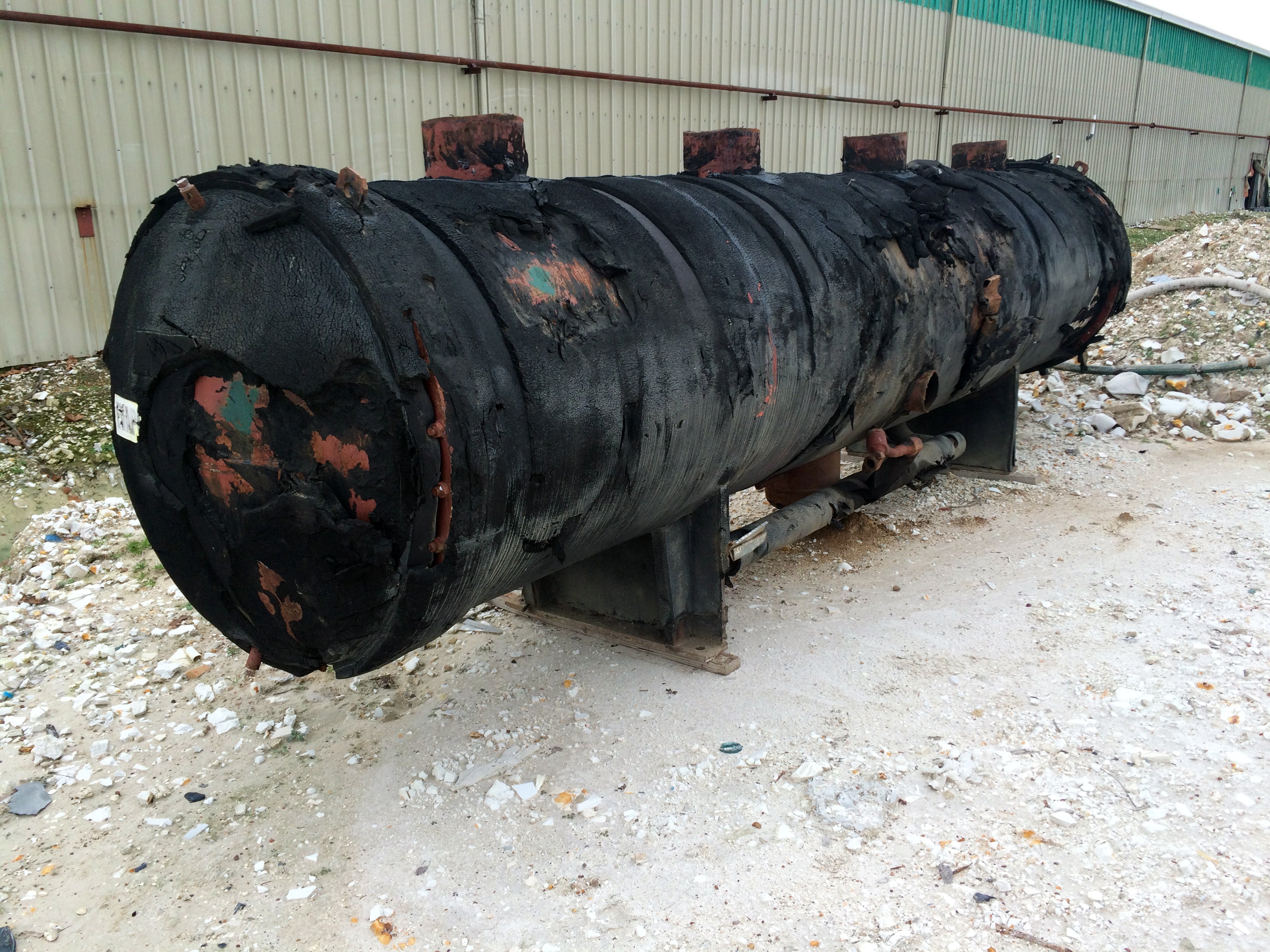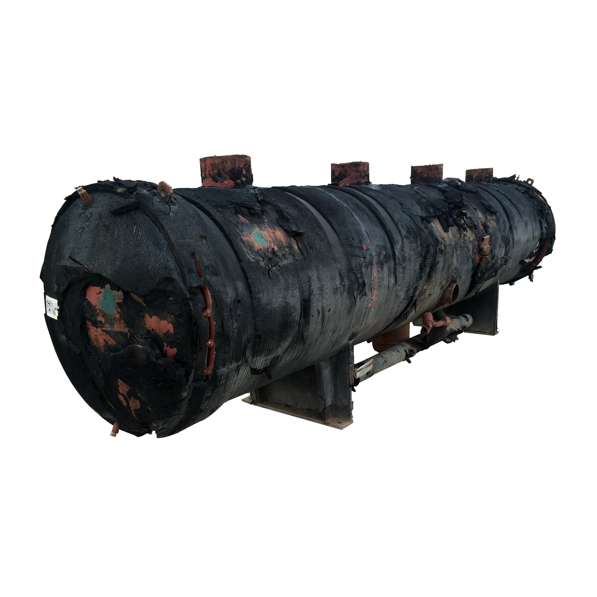Intercambiador de calor de carcasa y tubos con tambor de compensación de amoníaco. Anteriormente se utilizaba para preenfriar agua en una aplicación de fabricación de hielo. Faltan placas de identificación. Se retiró del intercambiador de calor el tambor de compensación de amoníaco montado en la parte superior. Cantidad disponible: 1. Diámetro: 30 pulgadas. Longitud de la pared lateral: 14 pies.