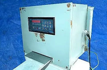 Escala ERA. Modelo: DF2000. Número de serie: C11843. Capacidad de peso: 5000 lb. Entrada de control: 12 VCC, 1,5 A, salida: 10 VCC, 500 mA. Plataforma de acero inoxidable: 30-1/2 pulgadas de largo x 24-3/4 pulgadas de ancho. Sistema de impresión de etiquetas. Base con (4) ruedas. Dimensiones totales: 45 pulgadas de largo x 25 pulgadas de ancho x 60 pulgadas de alto.