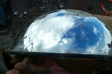 Espejos de seguridad tipo domo, 2 de estos espejos son ½ esfera, los otros dos son ¼ de esfera. Las 2 esferas de ¼ tienen 27 pulgadas de diámetro, las 2 ½ esferas tienen 34 pulgadas de diámetro.