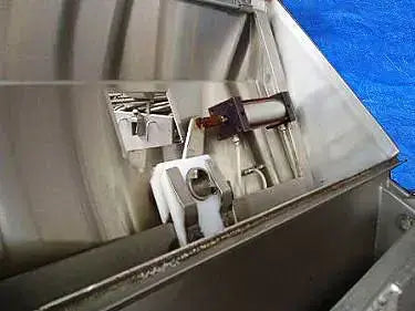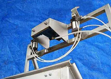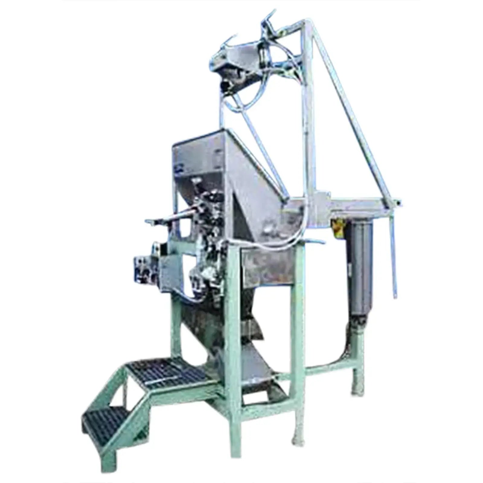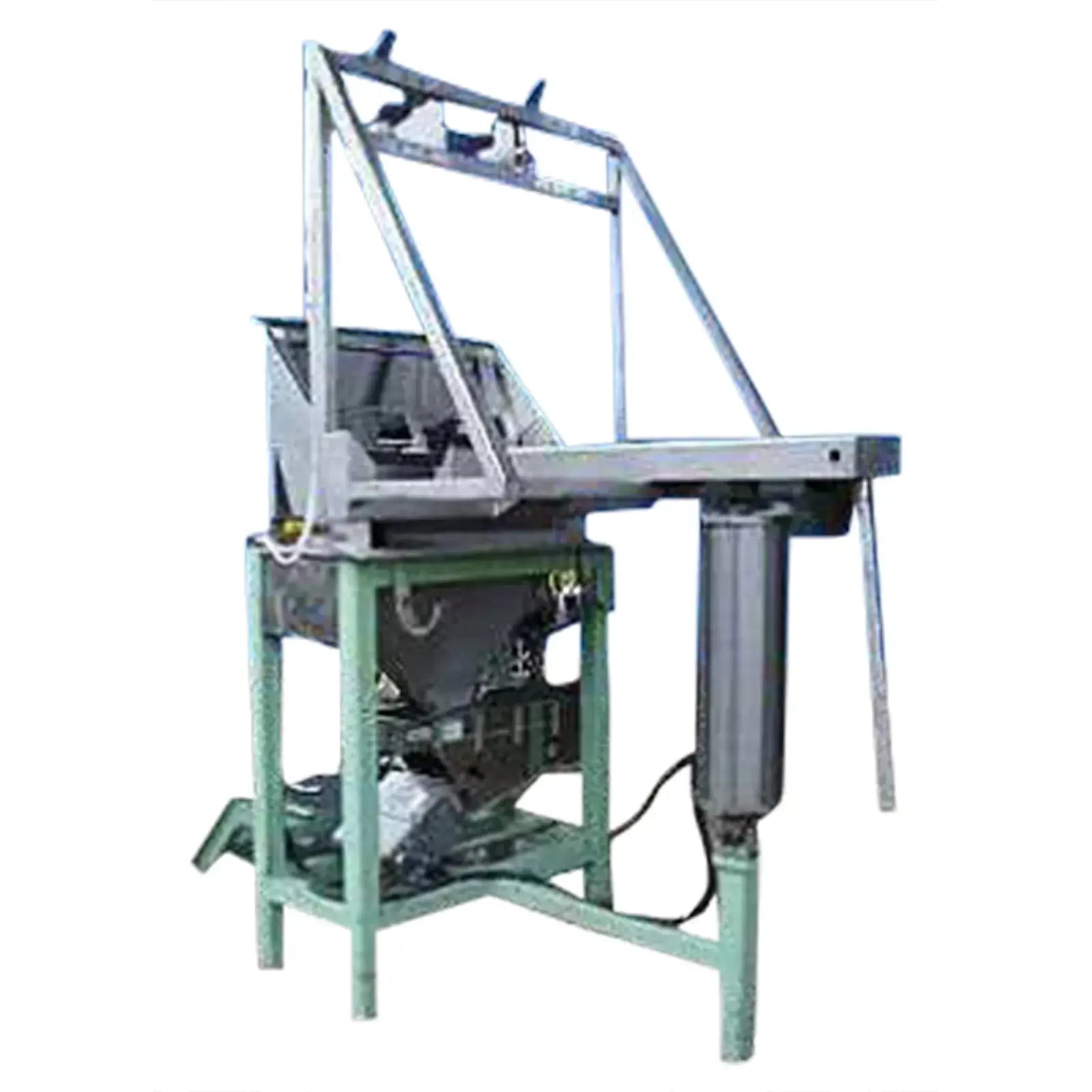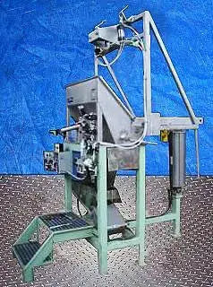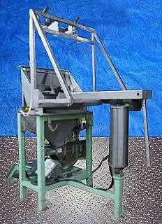 2000 Custom Metalcraft Inc. Transstore Tilt Station. Modelo 1049800. S/N 36567. La inclinación está diseñada para un contenedor base de 42 x 48 pulgadas y aproximadamente 50 pulgadas de alto. Sin embargo, la altura puede variar. Esta máquina requirió un mínimo de 80 psi de aire de planta para funcionar. Debe tener válvulas de control en la unidad que operen el cilindro de inclinación, el abridor automático de puertas y el vibrador de pistón. Funciona de la siguiente manera: 1) Colocar el contenedor en su posición. 2) Incline la unidad a la posición de descarga. 3) Encienda el abrepuertas automático. 4) Encienda el vibrador si el producto no fluye. 5) Una vez vacío, apague el vibrador, cierre la puerta e inclínelo hacia atrás hasta la posición de descarga. Dimensiones de la tolva de alimentación: 37 pulgadas de largo x 21 pulgadas de ancho. Entradas: (1) 37 pulgadas de largo x 7 pulgadas de ancho. Salidas: Canal de descarga de 5-1/2 pulgadas de largo x 3-1/2 pulgadas de ancho . Dimensiones totales: 80 pulgadas de largo x 60 pulgadas de ancho x 111 pulgadas de alto.