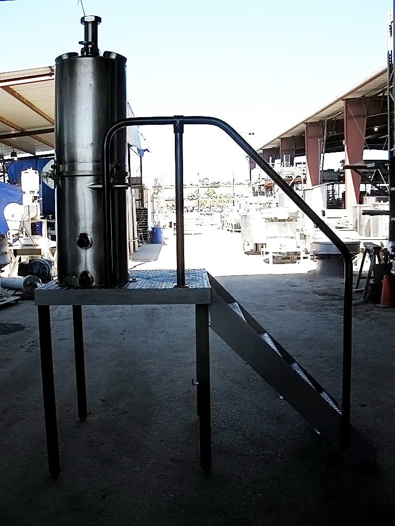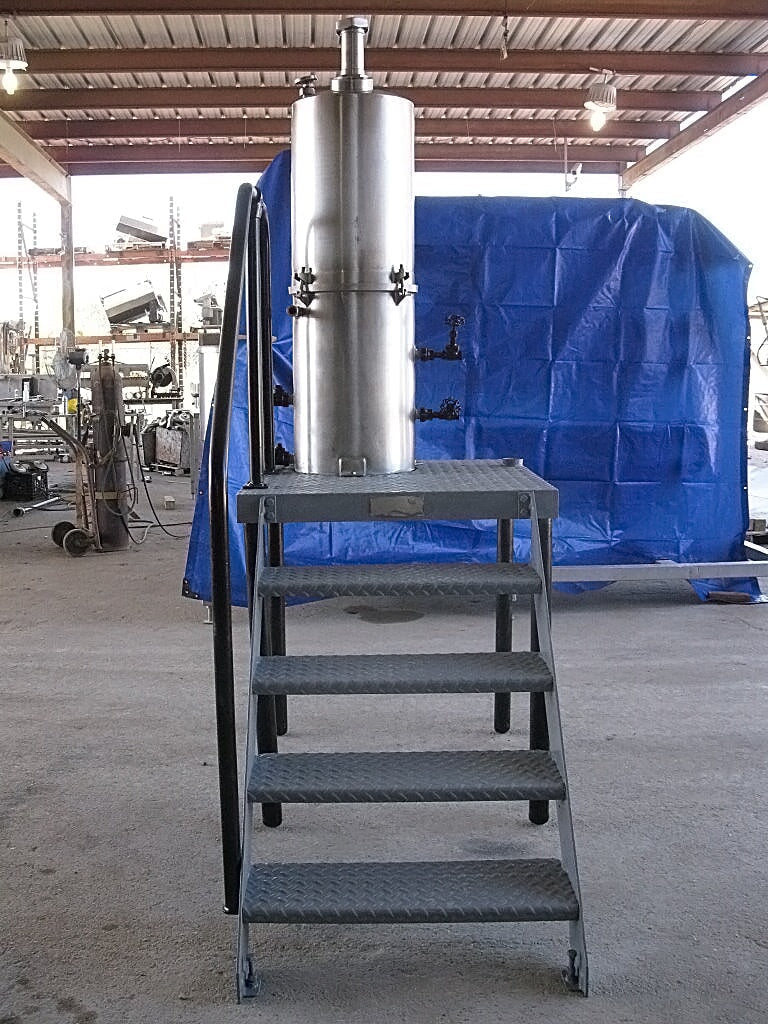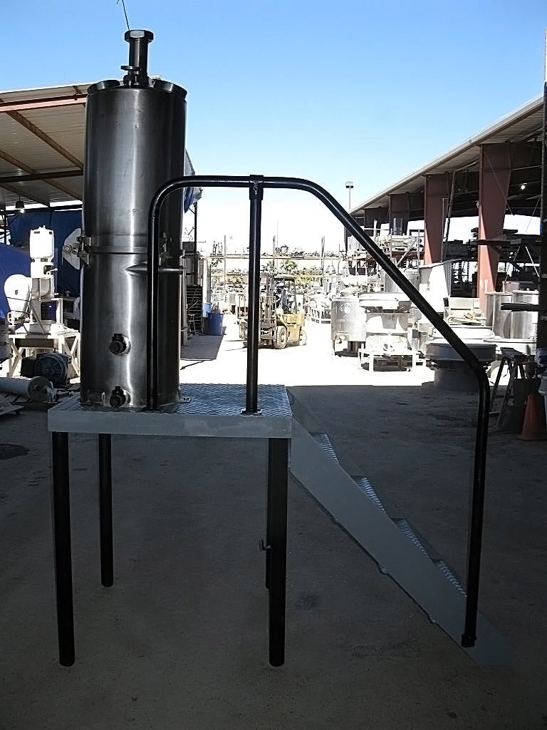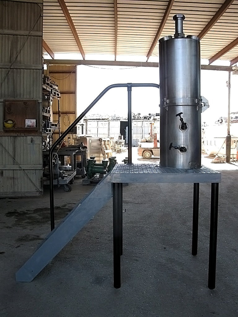 Evaporador de bandeja al vacío CE Rogers - 35 galones. S/N: 17635 69. (2) 5 pulgadas de diámetro. gafas de vista. El acceso al tanque se realiza mediante una escalera de 4 escalones de 30-1/2 pulgadas de ancho con barandillas laterales. Entradas/salidas: (1) 3 pulg. de diámetro. bisel, (2) ¾ pulg. FNPT, (2) 1 pulg. FNPT, (2) 1 pulg. MNPT. Dimensiones totales: 6 pies de largo x 3 pies de ancho x 8 pies 5 pulgadas de alto.