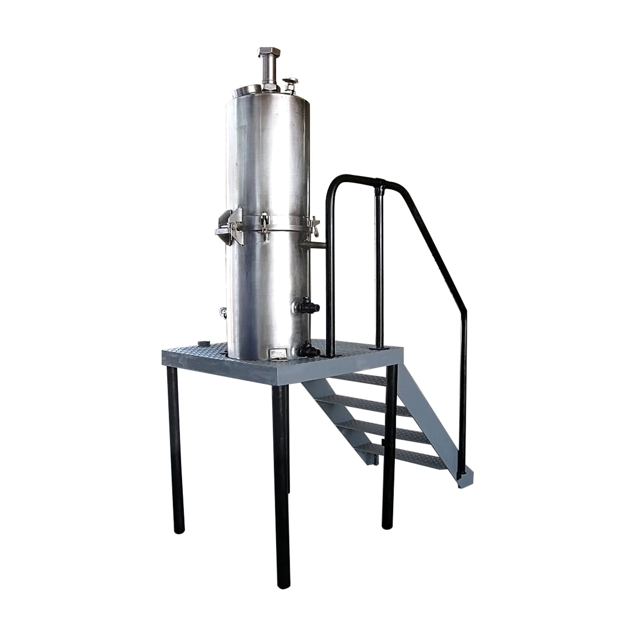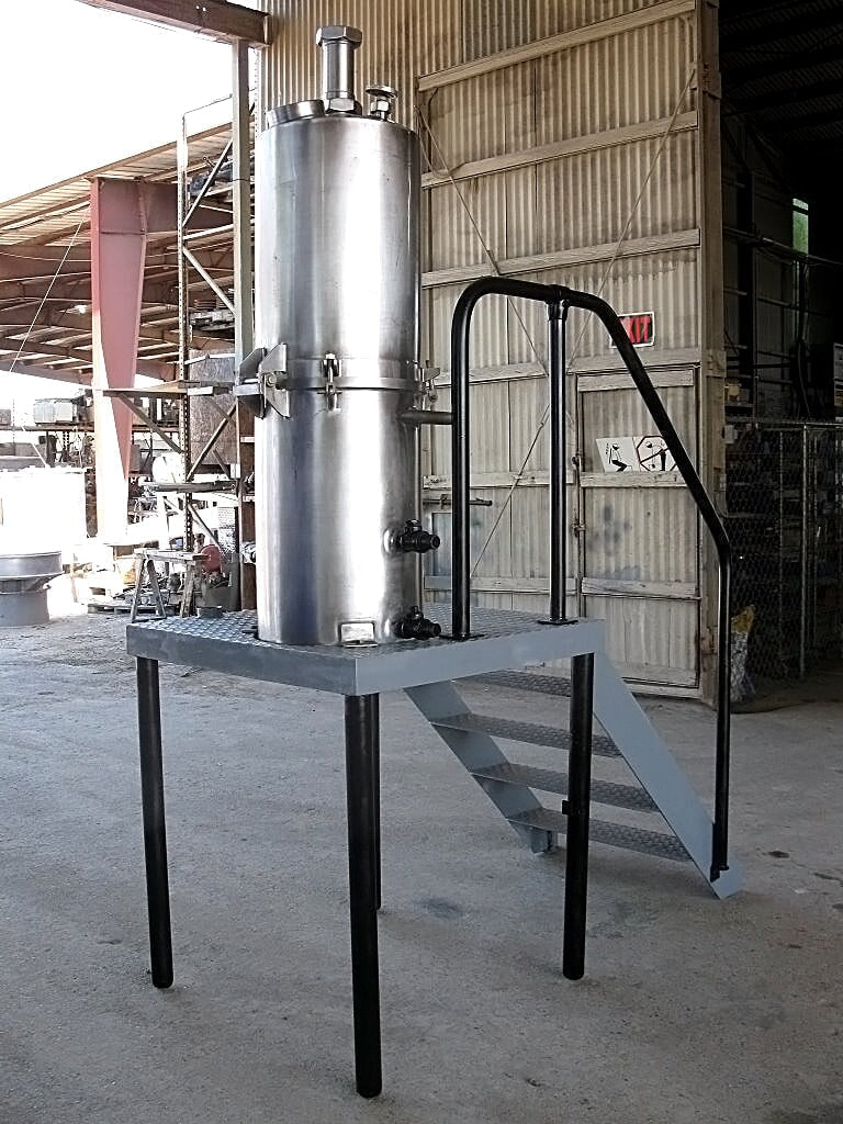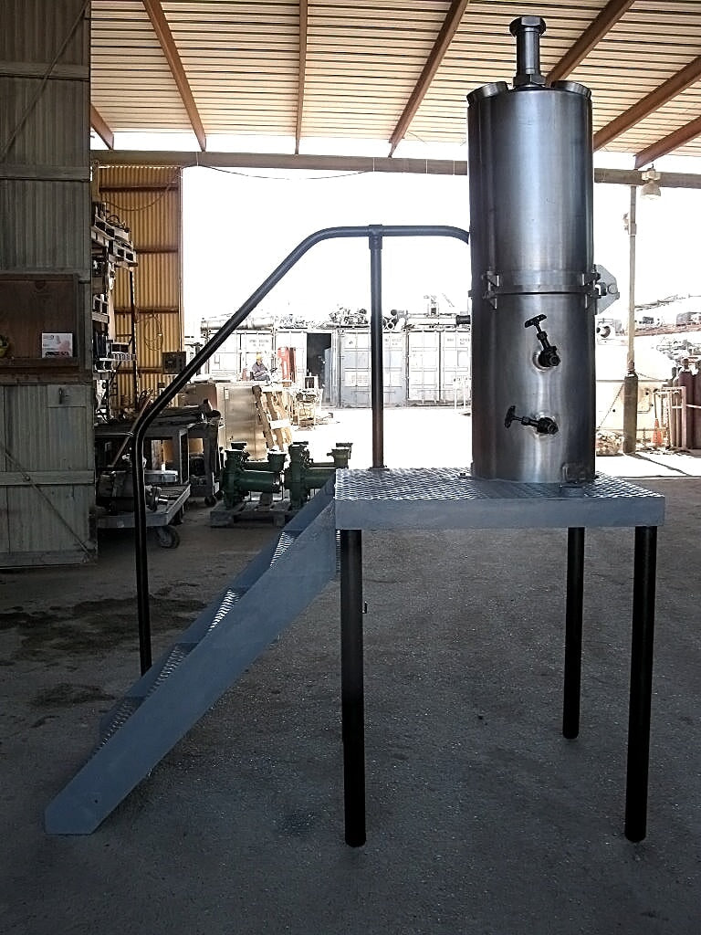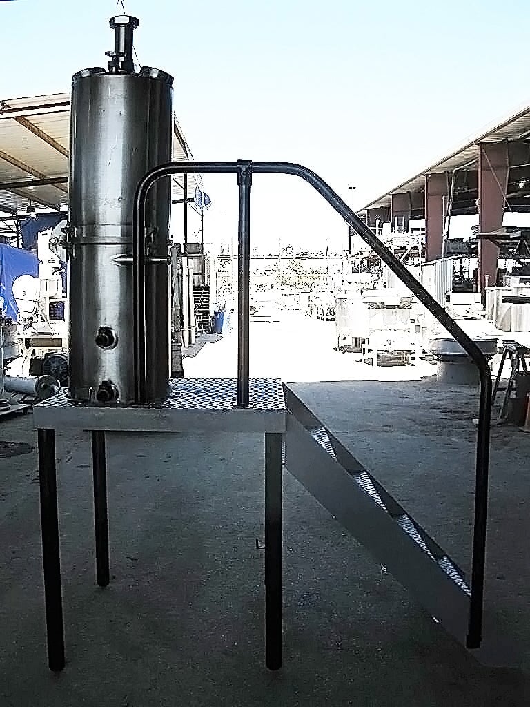 Evaporador de bandeja al vacío CE Rogers - 35 galones. S/N: 17635 69. (2) 5 pulgadas de diámetro. gafas de vista. El acceso al tanque se realiza mediante una escalera de 4 escalones de 30-1/2 pulgadas de ancho con barandillas laterales. Entradas/salidas: (1) 3 pulg. de diámetro. bisel, (2) ¾ pulg. FNPT, (2) 1 pulg. FNPT, (2) 1 pulg. MNPT. Dimensiones totales: 6 pies de largo x 3 pies de ancho x 8 pies 5 pulgadas de alto.
