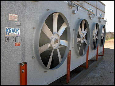Evaporador de ráfaga Krack de baja temperatura y 4 ventiladores. Modelo: PCA4H-110-10-3-10-RBA-HGU-LH. Refrigerante: recirculado, alimentación inferior R-717 (amoniaco). Capacidad nominal: 650 000 BTUH, o 57 toneladas para una habitación de -30 °F con una temperatura del serpentín de -40 °F. Aire a 101.000 cfm. Volumen interno de la bobina: 18,1 pies cúbicos. (4) motores de 10 hp, 1750 rpm, 460 V, 60 Hz, trifásicos. Esta unidad tiene un serpentín totalmente de aluminio y cuenta con un serpentín de gas caliente y descongelación de bandeja. El flujo de tubería lo designa como una unidad "para zurdos". Dimensiones totales: 22 pies 11 pulgadas de largo x 4 pies 2 pulgadas de ancho x 7 pies 6 pulgadas de alto (ACN271-87).