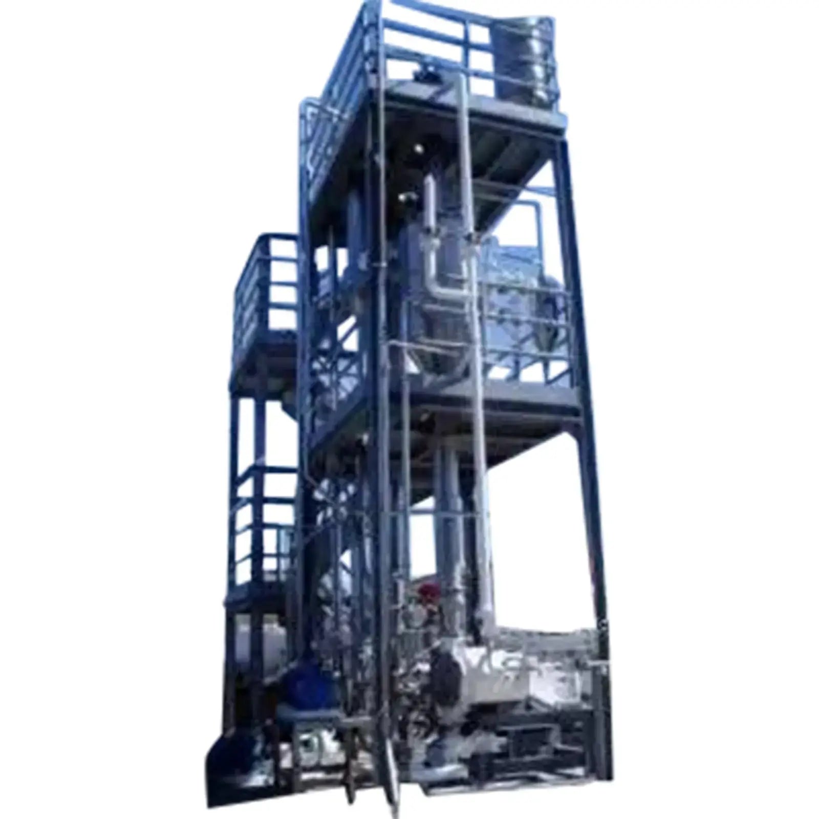 Evaporador de 2 efectos Rossi & Catelli 1995: 1100 lb/h. Modelo T-05. Salida: 109 lbs/hr, Entrada: 1320 lbs/hr, 450 lbs de vapor/hr, 1100 lbs/hr de evaporación de agua. Este pequeño evaporador Rossi & Catelli de 2 efectos está en muy buen estado. Fue diseñado para procesar pasta de tomate y funcionará con la mayoría de los otros tipos de purés de frutas y verduras de alto valor. Velocidad de alimentación 1320 libras por hora. Tasa de evaporación 1100 libras por hora. Tarifa del producto 109 + libras por hora. Podría usarse como finalizador para un sistema preconcentrador más grande. Lo tenemos instalado frente a nuestras oficinas en Edinburg, Texas. Lo revisamos y reparamos cualquier problema que encontramos. Está listo para ser enviado a sus instalaciones, conectado a las tuberías de servicios públicos y de productos y puesto en marcha. Estas medidas se toman desde el exterior de las bridas que sujetan las unidades a los cimientos. La sección del evaporador mide 116 pulgadas x 90 pulgadas (aprox.: 10' x 8'). La sección de la escalera mide 104 pulgadas x 83 pulgadas (aprox.: 9' x 7'). La unidad mide 294 pulgadas o aproximadamente 25 'de altura.