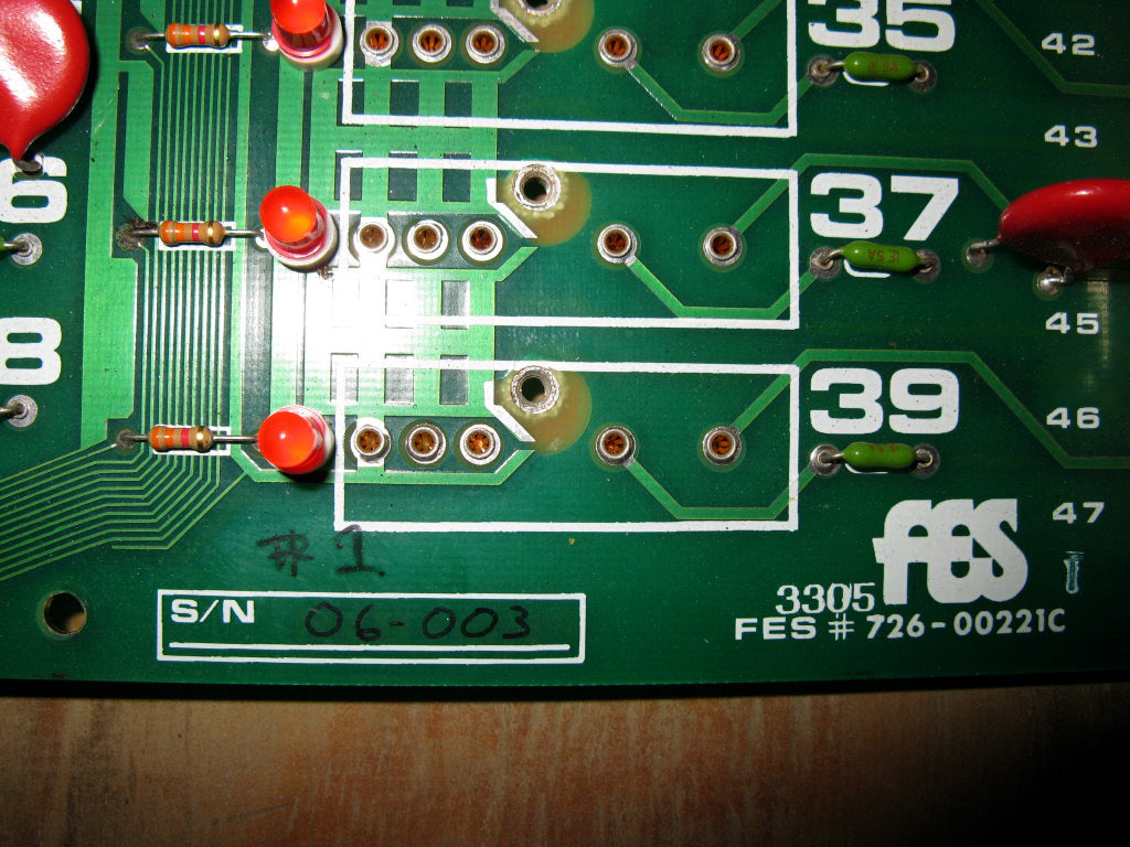 Placa IO de control Micro II de FES, Inc. Modelo: 726-00221C. Números de serie. 06-003.
