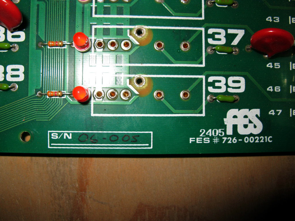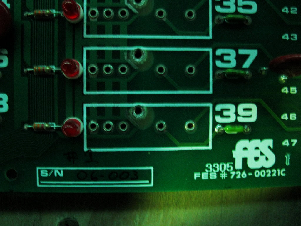 Placa IO de control Micro II de FES, Inc. Modelo: 726-00221C. Números de serie. 06-005.