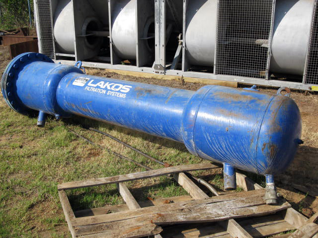 Filtro de arena Lakos de Claude Laval Corporation. Modelo: LAX. Entrada/salida(s): (2) bridas de 12 pulg., (1) 2-1/4 pulg., (1) 3-1/2 pulg. Dimensiones totales: 12 pies 4 pulg. de largo x 3 pies. 5 pulgadas de ancho x 3 pies de alto (ACN27a).