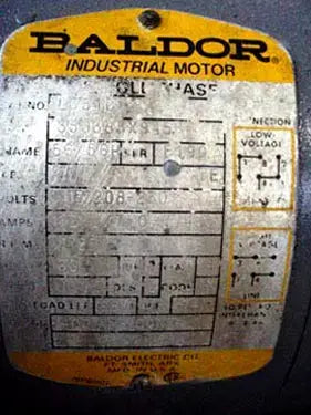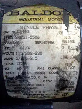 - Si hay varios motores, descripciones de motores frente a especificaciones: (1) 0.25 hp Baldor Electric motor and (1) Baldor Electric motor
