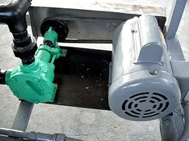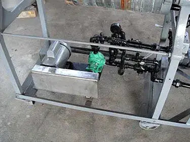 Filtro prensa móvil Ogden. El marco está equipado con (9) 12 pulgadas de diámetro. placas de filtro y (10) divisores, un tanque de mezcla con tapa abatible y control de flotador. Las placas se cierran girando un tornillo de banco manual. (4) Las ruedas permiten un fácil posicionamiento. Área de filtrado: 7 pies cuadrados. La capacidad del tanque de mezcla es de 26 galones, tiene un diámetro de 18 pulgadas. hélice mezcladora. Motor eléctrico Baldor, 1/4 hp, 1725 rpm, 115/208-230 V, 5/2.6-2.5 amperios, 60 Hz, monofásico. Relación de transmisión: 50. Revoluciones finales: 34,5 (Mezclador). Motor eléctrico Baldor, 1725 rpm, 115/208-230 V, 2,8/7,0-6,4 amperios, 60 Hz, monofásico. Polea conductora: 3 pulg. de diámetro. Polea conducida: 4 pulg. de diámetro. Relación: 1,33. Revoluciones finales: 1296 (bomba de producto). Entradas: (1) 9-5/8 pulg. de diámetro. parte superior abierta (tanque mezclador), (2) adaptadores de manguera de 1 pulg. salidas: (1) 1 pulg. de diámetro. accesorio adaptador de manguera. Dimensiones totales: 8 pies de largo x 2 pies 11 pulgadas de ancho x 4 pies 11 pulgadas de alto.