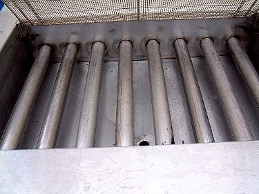 1995 Freidora de donas a gas DCA. Modelo: RFG 334 DE. S/N: 118. Requisitos del sistema: 120 V, 50/60 Hz, monofásico. Temperatura controlada (rango de temperatura: 200-390°F). Área para freír: 34 pulgadas de largo x 24 pulgadas de ancho x 8 pulgadas de alto. Capacidad: 23 galones (nivel alto), 19,4 galones (nivel bajo). Válvula de seguridad de corte de gas. Salidas: (1) descarga de 1 pulgada de diámetro. Dimensiones totales: 48 pulgadas de largo x 43 pulgadas de ancho x 61 pulgadas de alto.