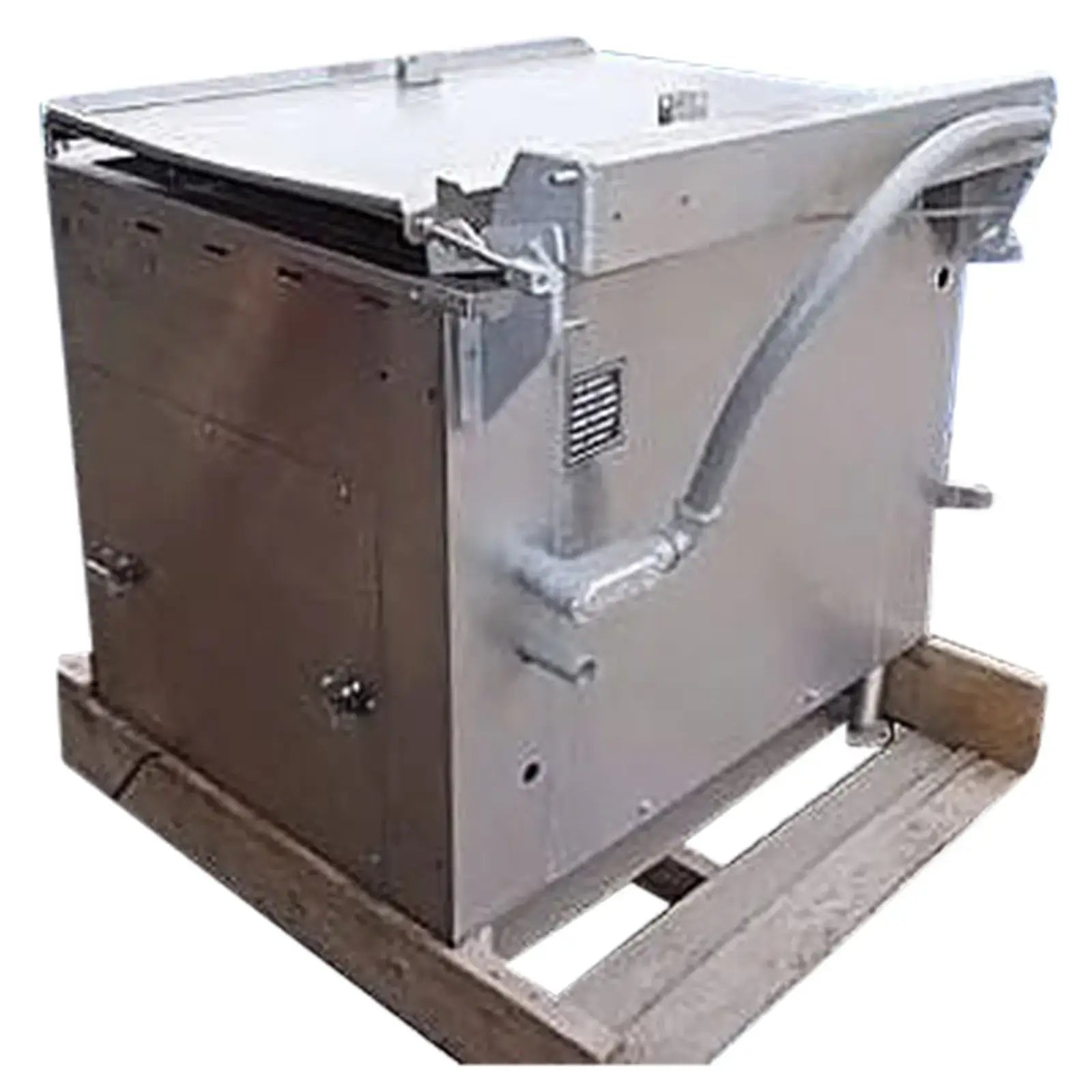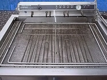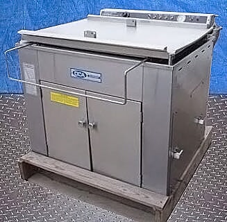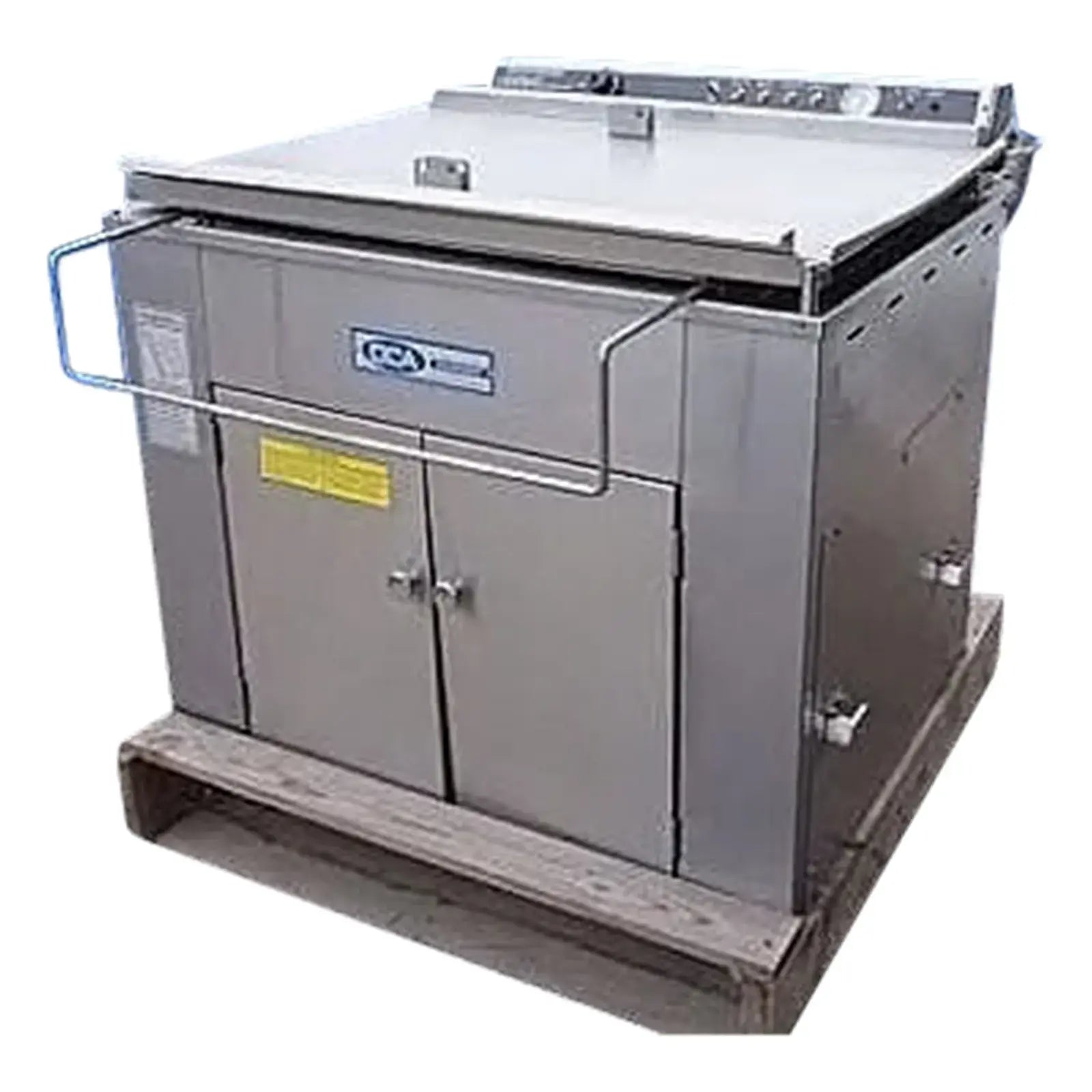 Freidora Eléctrica de Donuts de Acero Inoxidable DCA. Modelo: RFR 134. S/N: 111. Especificaciones de la unidad: 13,9 kW, 208 V, 50/60 Hz, trifásico. Dimensiones del tanque del sumidero de aceite: 3 pulgadas de largo x 28 pulgadas de ancho x 6-3/4 pulgadas de alto. Capacidad: 21,5 galones (aceite de alto nivel), 16 galones (aceite de bajo nivel). Indicador de nivel de aceite. Tapa de la freidora: 36-1/2 pulgadas de largo x 25 pulgadas de ancho x 1-1/4 pulgadas de alto. Válvula de flujo de aceite equipada; 1/4 de graduación. Interruptor regulador de calor: 0-400 °F con reinicio. Luces indicadoras para calentadores 1-3 y límite alto. Dimensiones totales: 44 pulgadas de largo x 41 pulgadas de ancho x 41 pulgadas de alto.