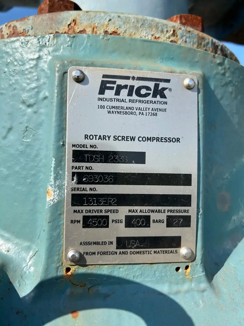 Compresor de tornillo rotativo Frick RWB-II-177 (Frick TDSH233S, 500 HP, 4000 V)