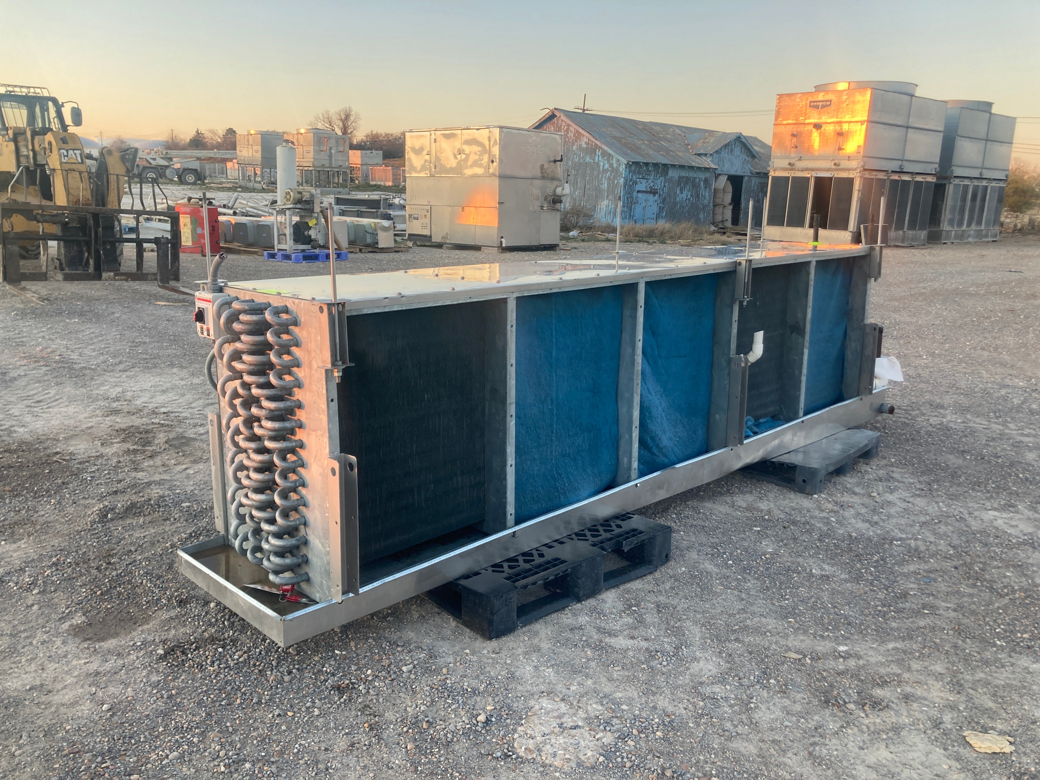 Este evaporador puede utilizar serpentines húmedos o esmerilados. Una capacidad húmeda de 18000 (BTUH / °F TD) con un tonelaje estimado de 22,5 (TR) a 15TD. Una capacidad helada de 16350 (BTUH / °F TD) con un tonelaje estimado de 20 (TR) @15TD. Flujo de aire de 20465 CFM. Un volumen de bobina de 6,56. Bobinas recirculadas. 5 Ventiladores con un nivel sonoro de 69,8 dBA. 4 aletas por pulgada.