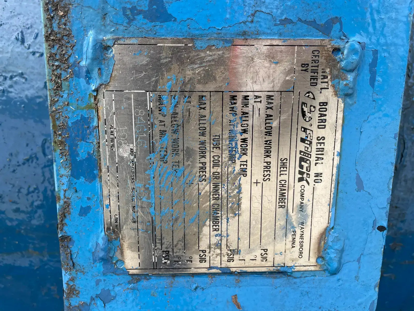 Máquina de hielo tubular Frick de 50 toneladas por día. Modelo: F36NF70. Cámara Frick Shell - Certificada por Frick Company. Junta Nacional: 84616. Máx. Presión de trabajo permitida: 250 PSIG @ -20 a 200 F. Año de construcción: 1989. La máquina de hielo Frick es muy similar a la máquina de hielo Vogt P34 en estilo y capacidad. Hielo 7/8 OD