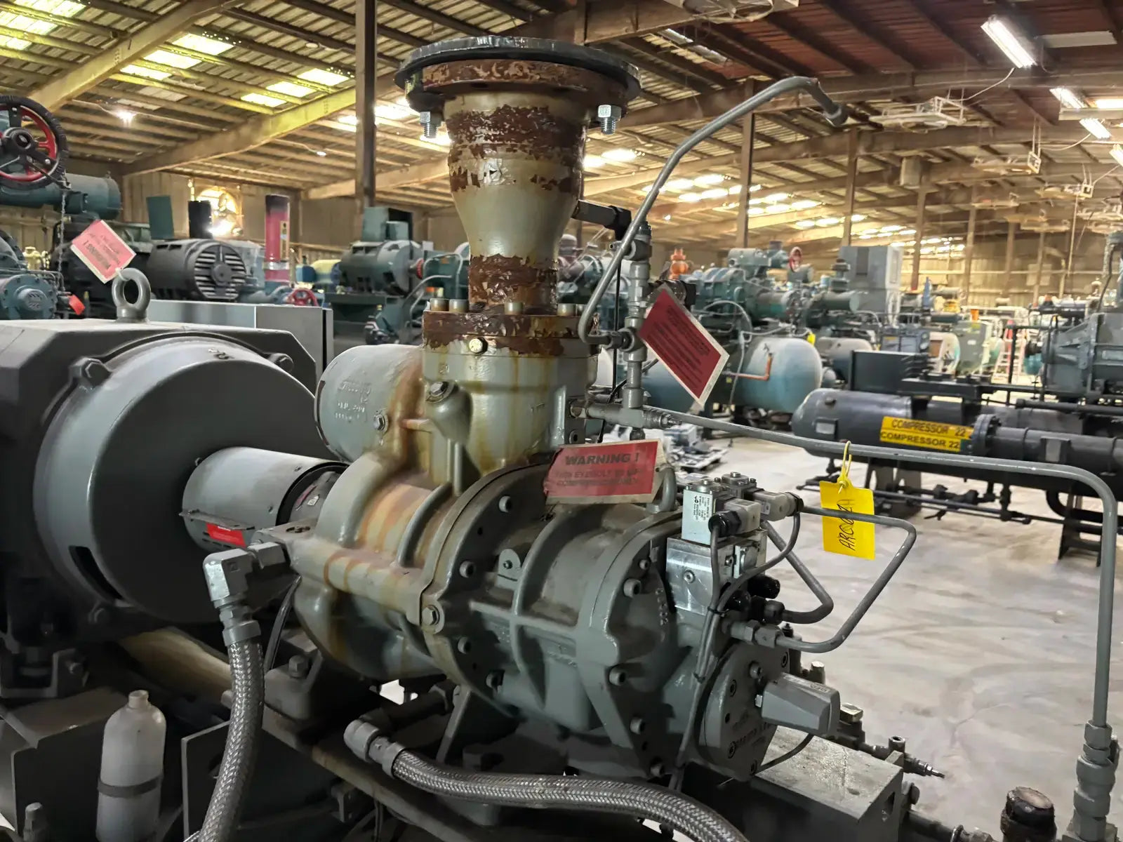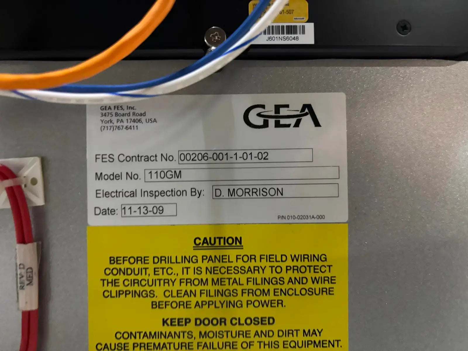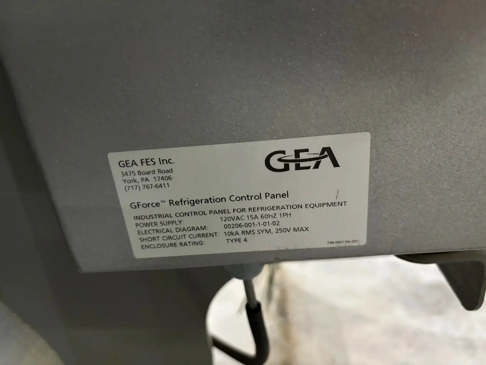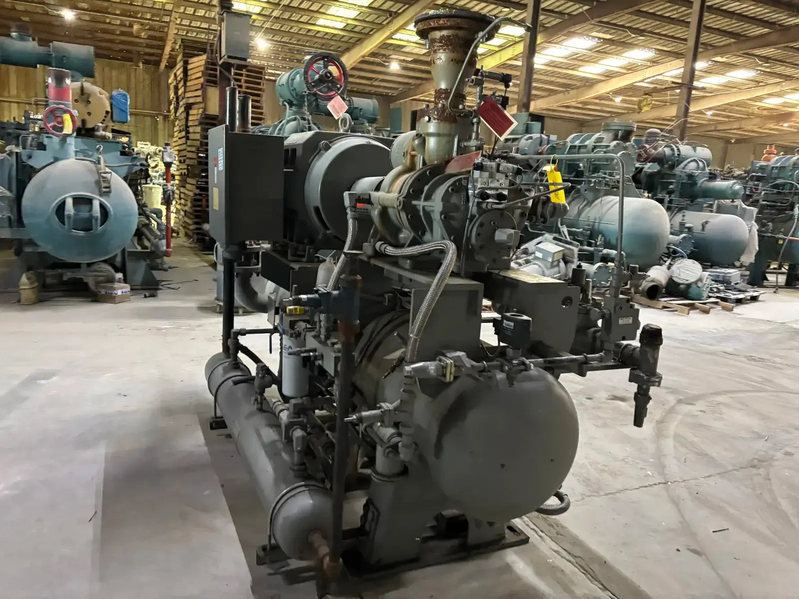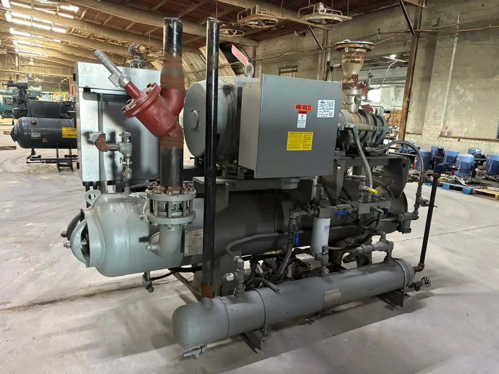 GEA/FES G Series Rotary Screw Compressor Package. Package Model: 110GME. Serial No: 09305012. Refrigerant: R-507. Cooling Type: Thermosiphon. GEA Bare Screw Compressor: Model: HR-H2655S-28, Serial No: H1065, Mark: 2, Year of Mfg: 2009, Hydraulic Test Pressure: 620 PSI, Max Design Working Pressure: 406 PSIG, Geometric Swept Volume @ 3550 RPM: 335 CFM. Refrigerant: R-507. Certified By GEA/FES Oil Separator: National Board: 6599, MAWP: 350 PSI @ 300F, MDMT: -20 F @ 350 F.