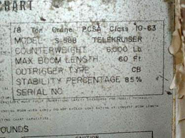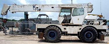 Grúa Bantam de Koehring. Modelo: Telekruiser S-588. S/N: 8406758. Capacidad: 18 toneladas. Contrapeso: 6.000 libras. Longitud máxima de la pluma: 60 pies. Tipo de estabilizador: CB. Porcentaje de estabilidad: 80%. Transmisión Detroit Diesel Allison, modelo: TT2221-1, S/N: 767656D22, P/N: 6880 785. (2) Neumáticos delanteros: Everest Supertraction, 12 capas, sin cámara, tamaño: 20,5-25. (2) Neumáticos traseros: Denman Earthmover Traction, de 12 capas, sin cámara, tamaño: 20,5-25. Filtro de aire: Marco CAK-255 F2298. Dimensiones totales: 32 pies 6 pulgadas de largo x 108 pulgadas de ancho x 13 pies 3-1/2 pulgadas de alto.