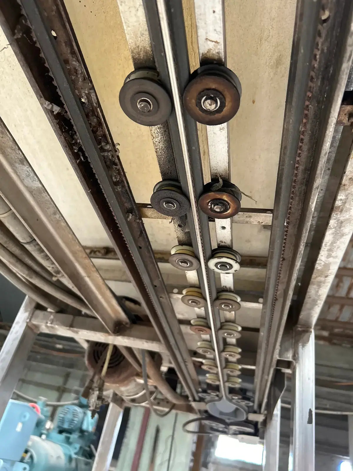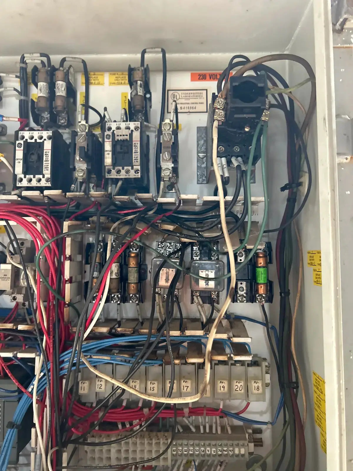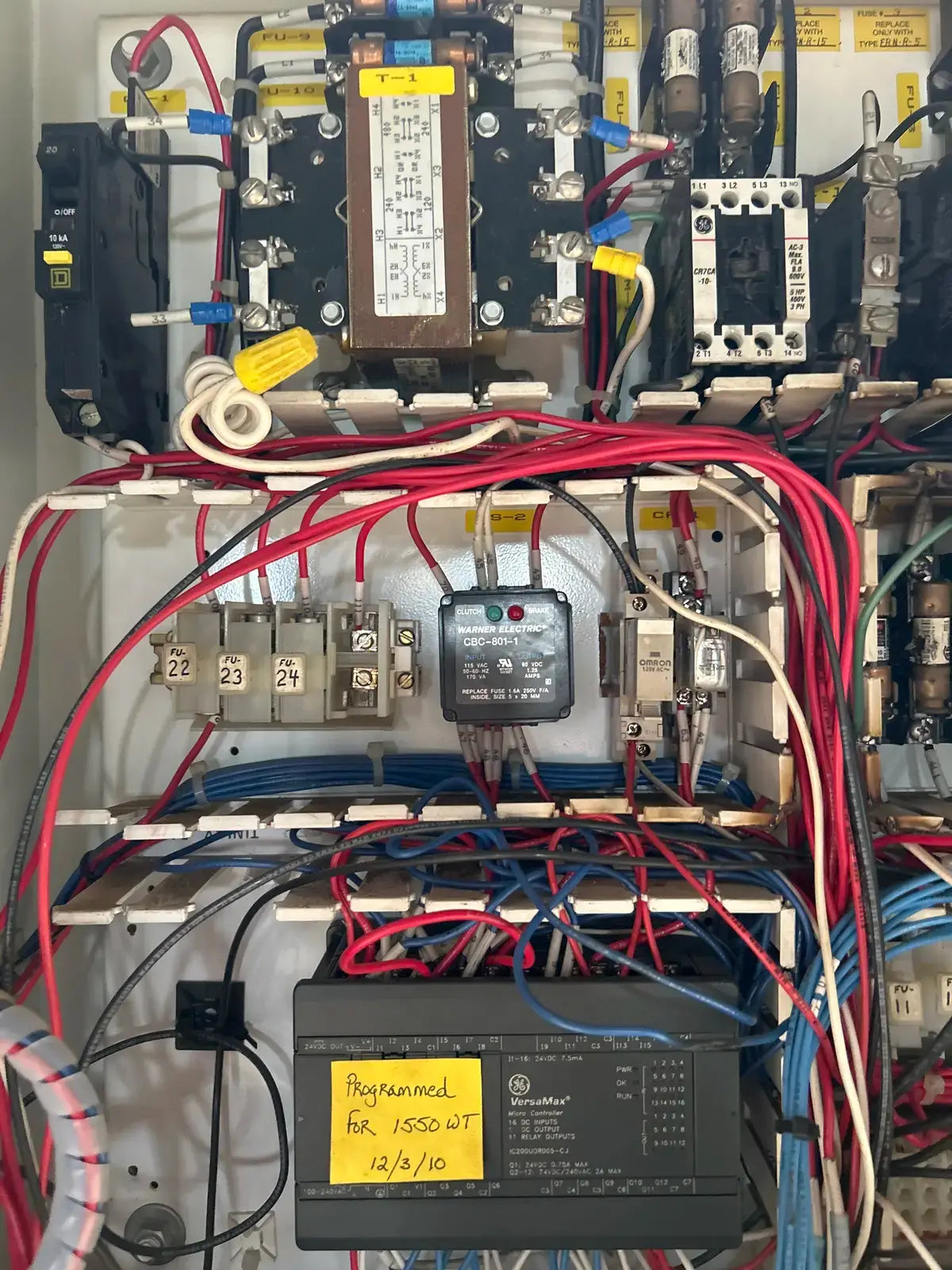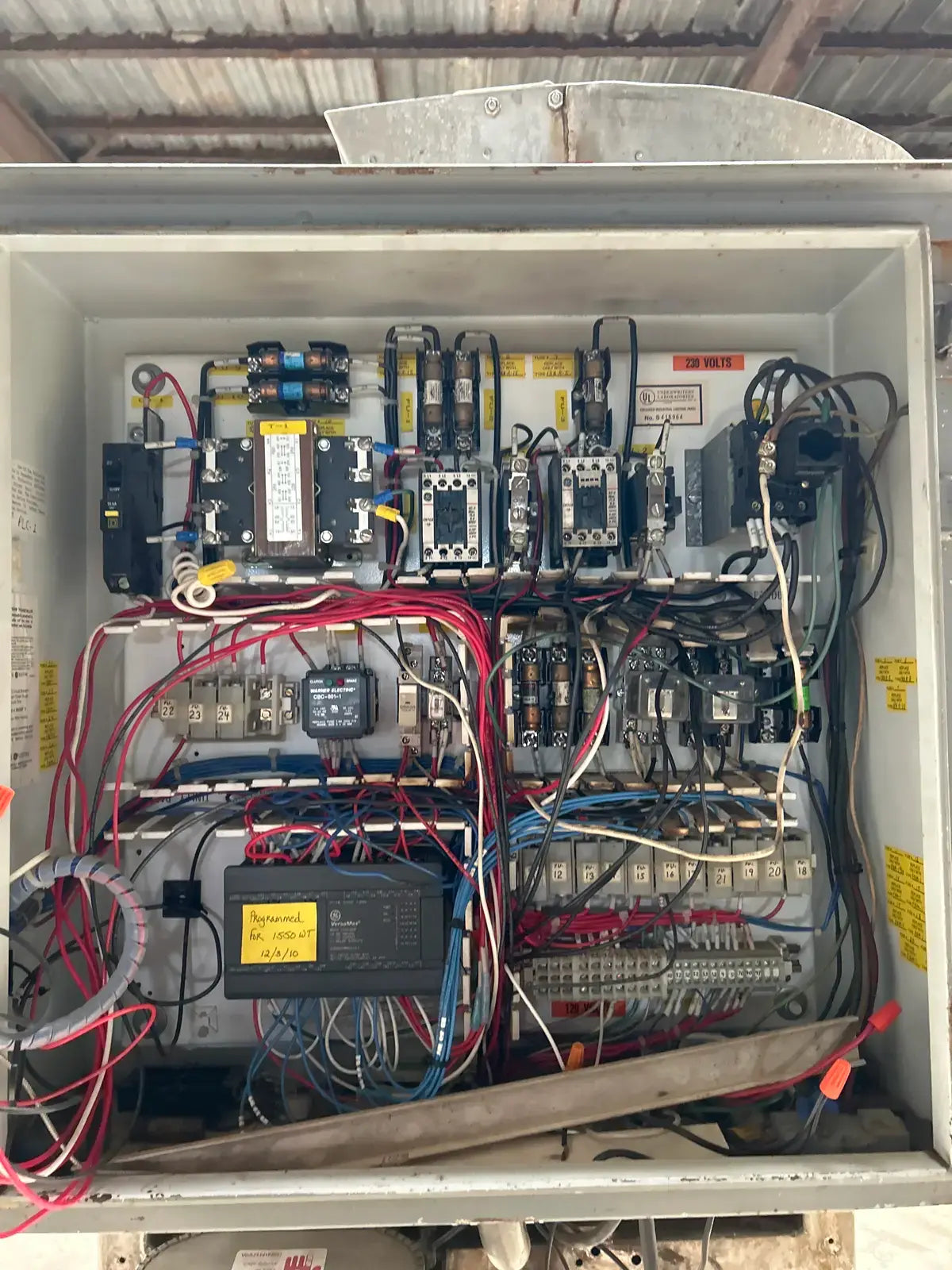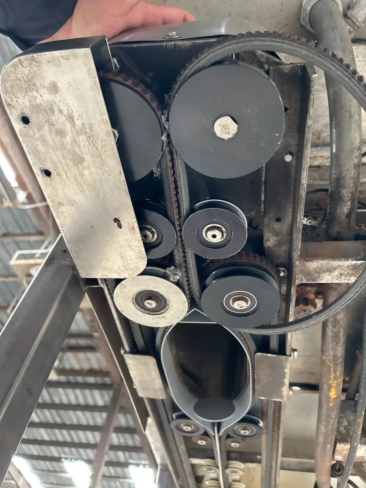 Sistema automático de envasado, llenado y sellado de hielo en bolsas Hamer. Modelo: 1550. N.º de serie: 91155014. Llena y sella más de 40 bolsas de hielo por minuto. Capacidad de bolsas: bolsas de 15 a 50 lb.
