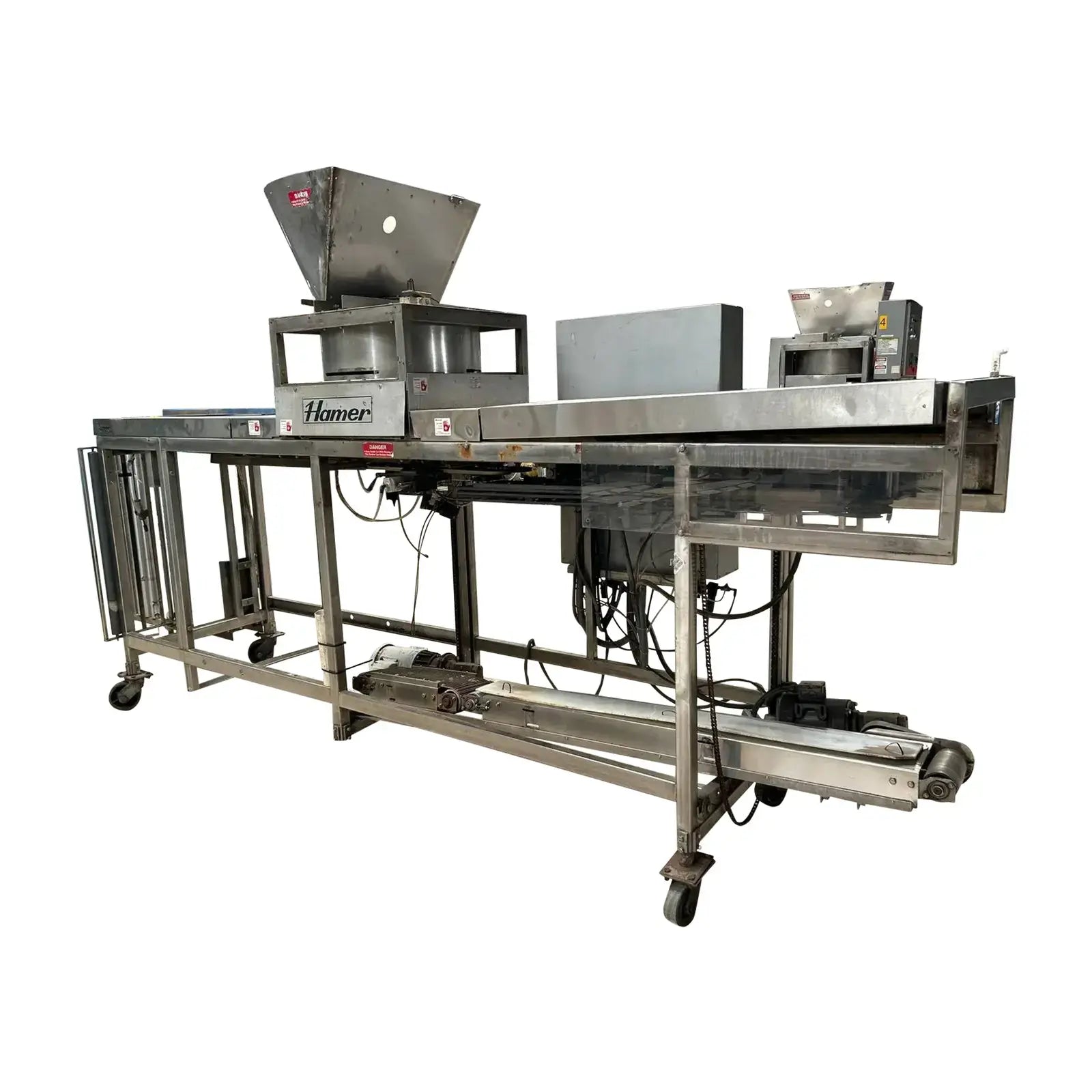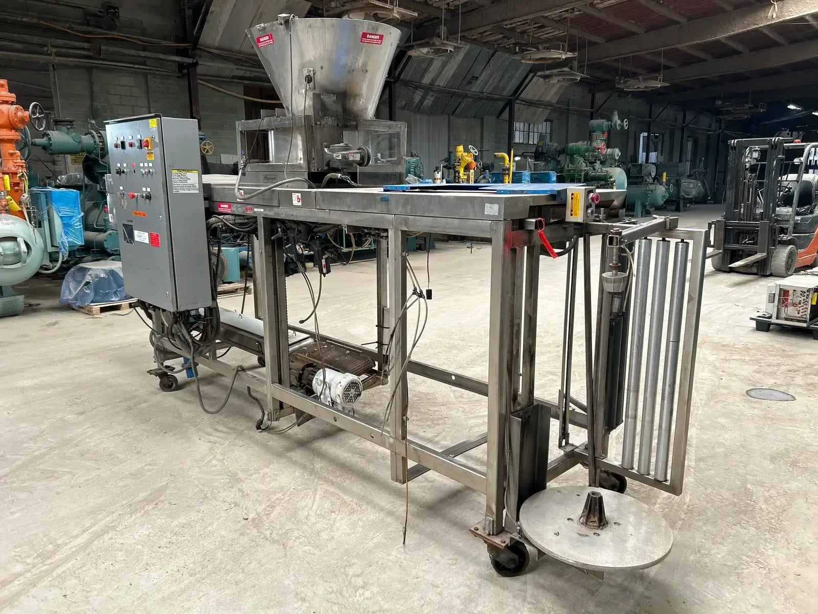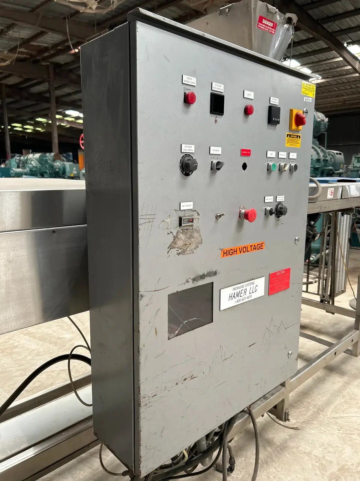Hamer Inc., Sistema automático de envasado con formado y sellado. Modelo: 535. N.º de serie: 0453566. Envasa a una velocidad estándar de 50 bolsas por minuto.