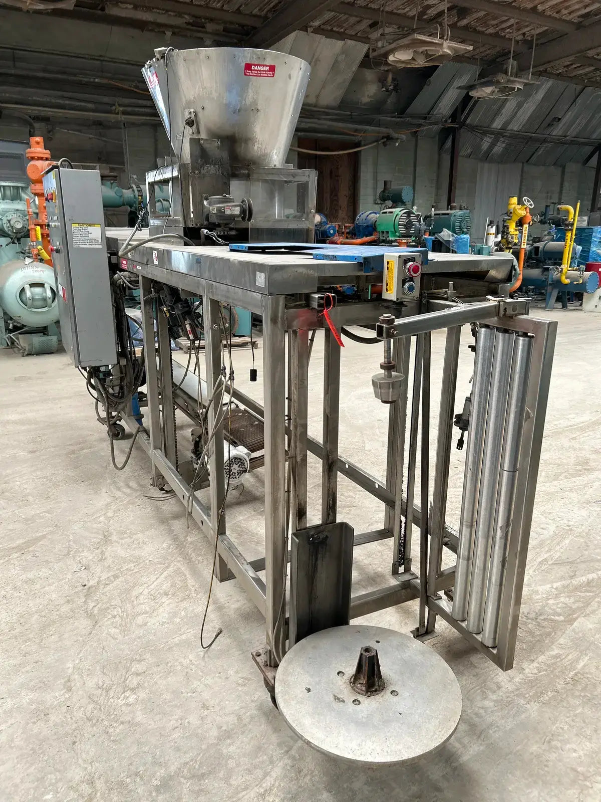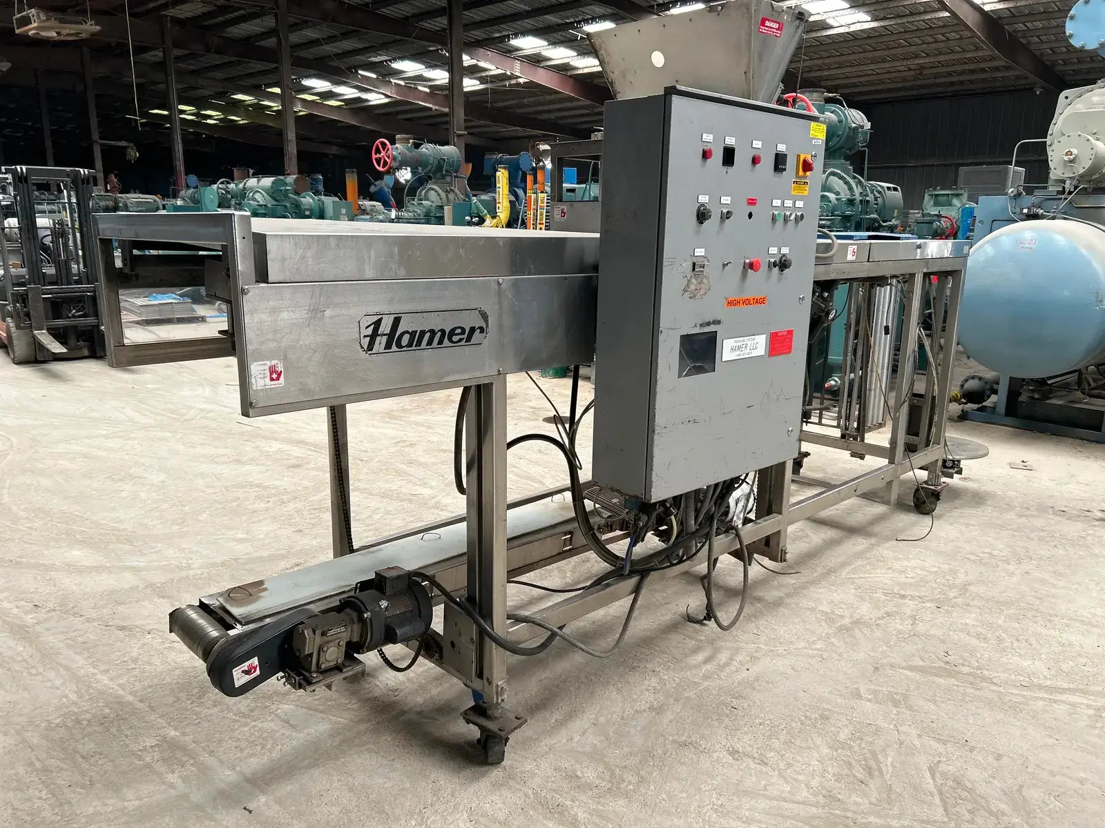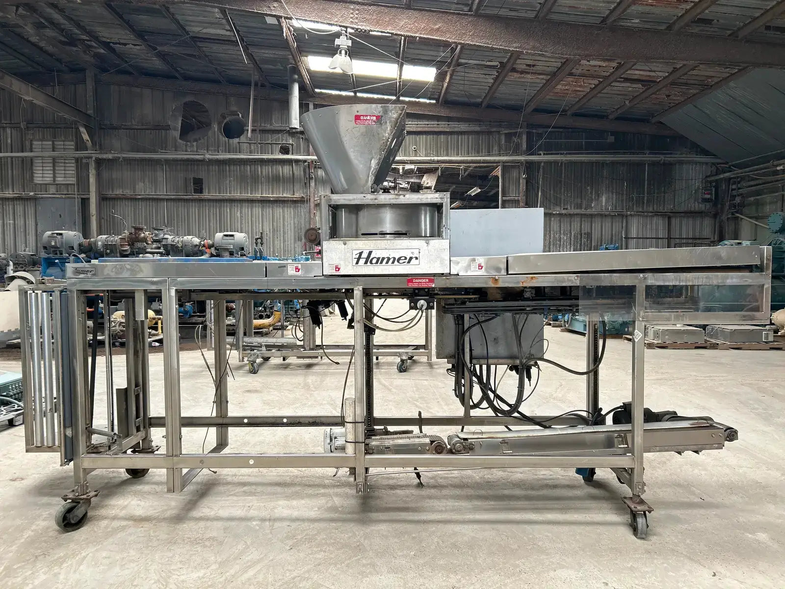 Hamer Inc., Sistema automático de envasado con formado y sellado. Modelo: 535. N.º de serie: 0453566. Envasa a una velocidad estándar de 50 bolsas por minuto.