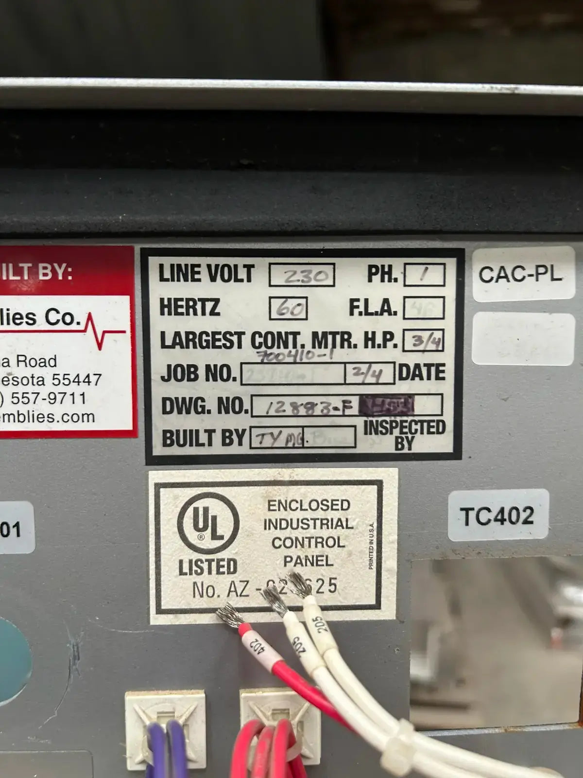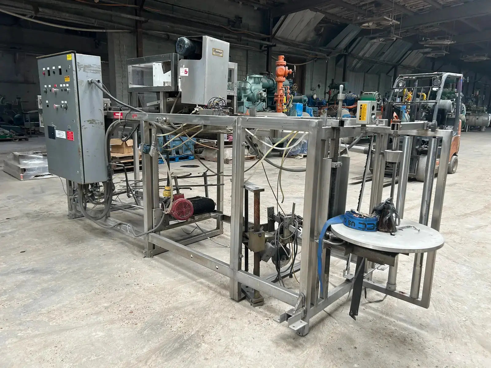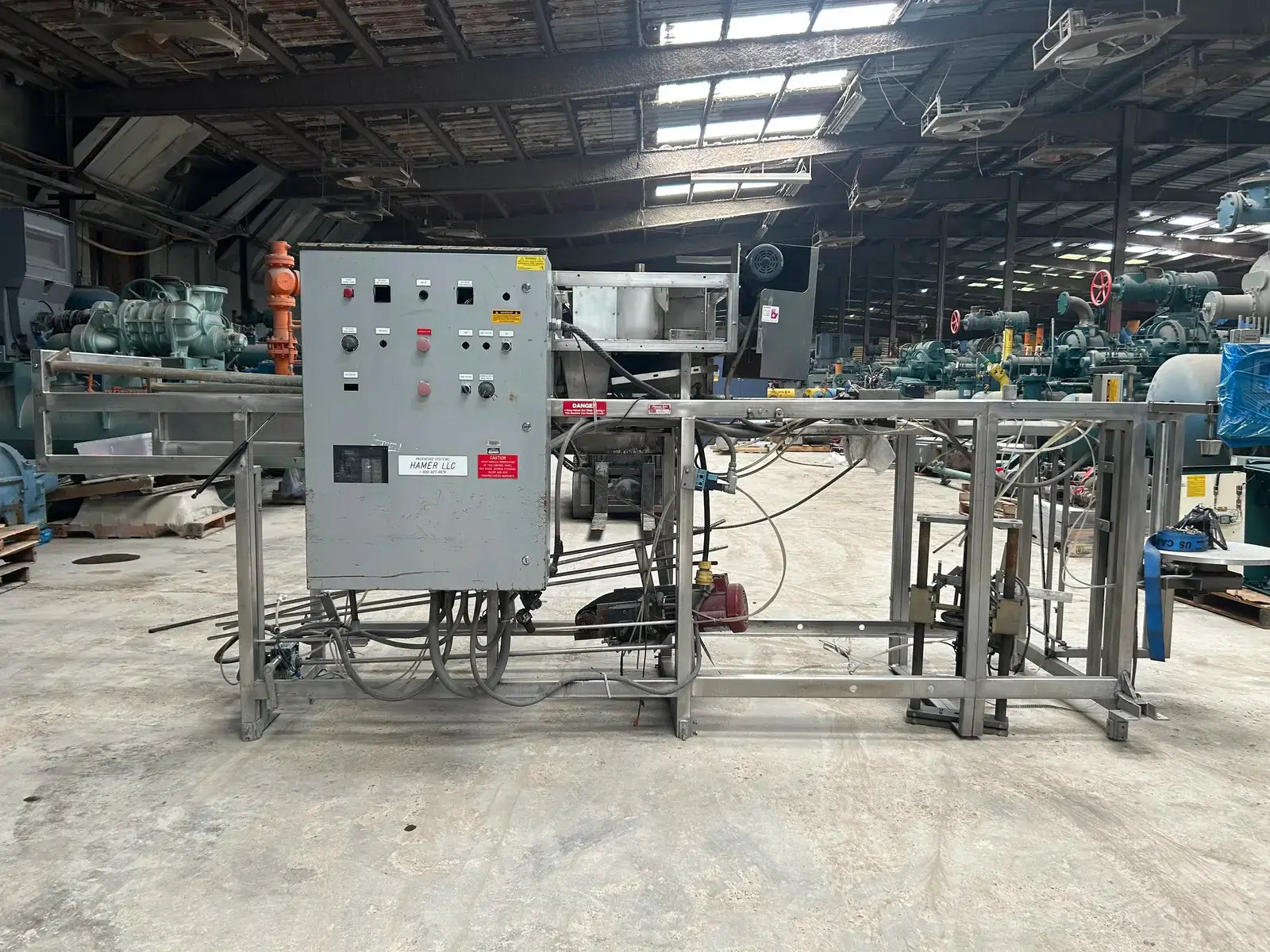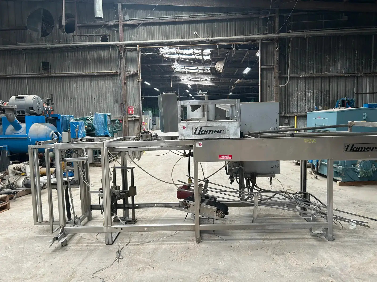 Sistema automático de llenado y sellado de bolsas de hielo Hamer Inc. Modelo: 535. N.° de serie: 0453555. Envases a una velocidad estándar de 50 bolsas por minuto.