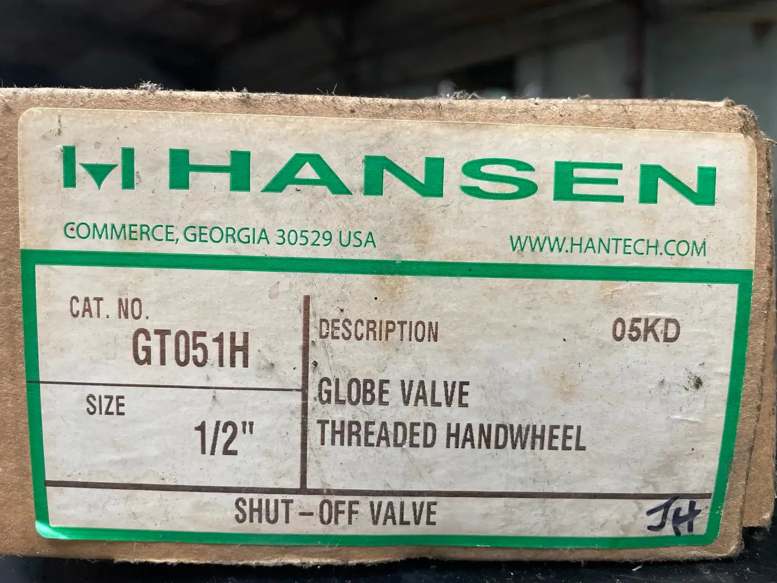 Válvula de cierre de globo de amoníaco Hansen GT051H sin usar. Tamaño: 1/2. Estilo de conexión: roscada.