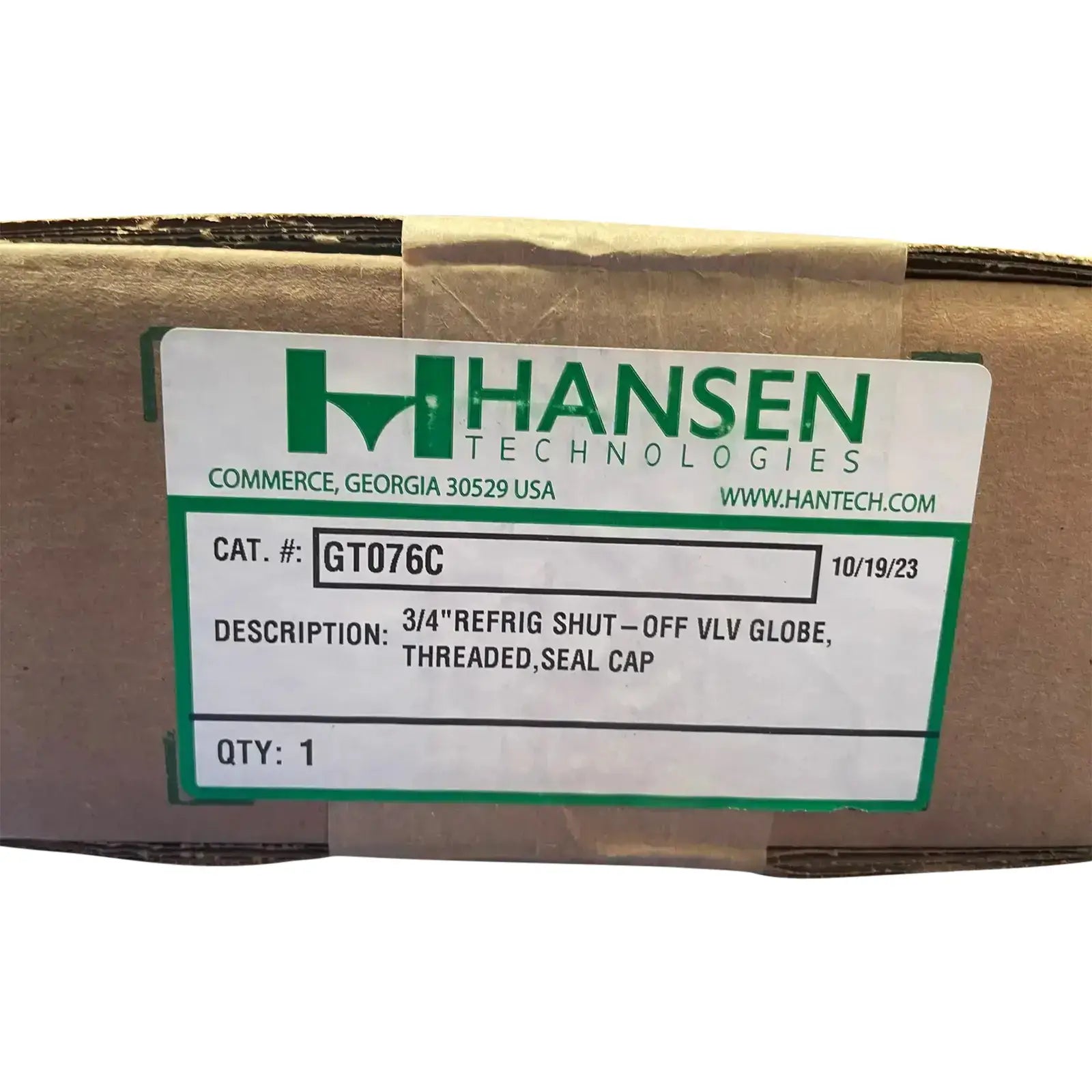Hansen Technologies Shut-Off Globe Valve. Cat No: GT076C. Pipe Size: 3/4" (20mm). Valve Style: Globe. Connection Style: FPT.