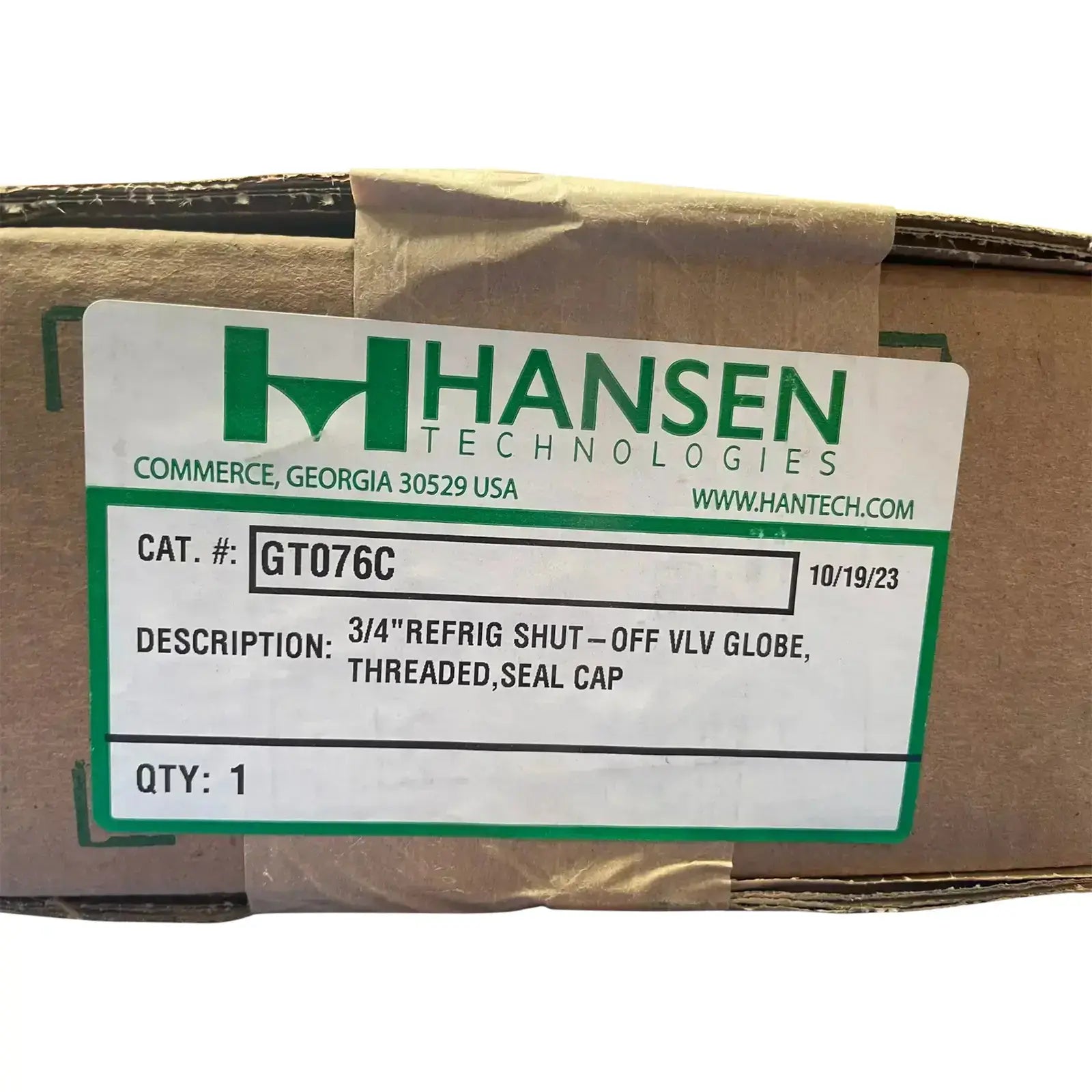 Hansen Technologies Shut-Off Globe Valve. Cat No: GT076C. Pipe Size: 3/4" (20mm). Valve Style: Globe. Connection Style: FPT.