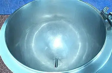 Hervidor con camisa de vapor a gas Groen, 80 galones. Modelo: AH/1-80. Número de serie: 678B. Nat'l Bd: 64106. MAWP: 360 psi a 300 °F. Tasa de entrada: 4,3 hp de caldera (145000 BTU/hr). Tipo de gas: natural. Requisitos del sistema: 115 V, 60 ciclos, 2 amperios, 1 fase. Completo con mirilla y presión, así como acceso piloto a través de una puerta circular. como calibre. Aplicaciones típicas: platos de carne, verduras, sopas, salsas, pasta, arroz, patatas, rellenos de tartas, salsas, aves, mariscos, bagels hirviendo. Gas. Entrada: Conexión NPT de 1/2 pulg. Salidas: Ventilación de 6-1/2 pulgadas de diámetro. Dimensiones totales: 38 pulgadas de largo x 45 pulgadas de ancho x 58 pulgadas de alto.