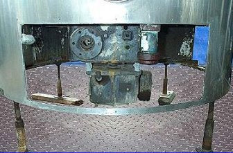 Hervidor con camisa Wegner Machinery: 250 galones. Modelo: B. S/N: 504. Construcción en acero inoxidable. El tanque está equipado con un agitador de raspado lateral. Reductor de velocidad. Entradas: (1) 2 pulg. de diámetro. Accesorio de línea S, (1) 2 pulg. de diámetro. NPT (macho, chaqueta), (1) 4 pulg. de diámetro. puerto, (1) 6 pulg. de diámetro. puerto. Salidas: (1) 3/4 pulg. de diámetro. NPT (hembra, chaqueta), (1) 2 pulg. de diámetro. racor roscado. Dimensiones totales: 67 pulgadas de largo x 55 pulgadas de ancho x 73 pulgadas de alto.