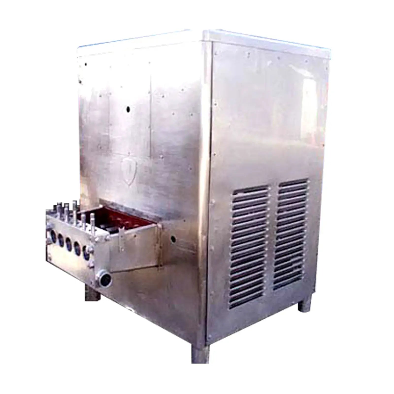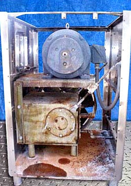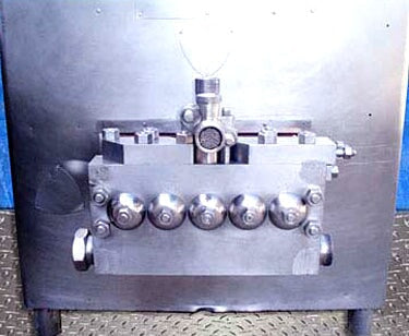 Homogeneizador de Crepaco APV. Modelo: 5DD425. Capacidad máxima: 2205 gph a 2000 psi. Capacidad mínima: 800 gph. La presión y el caudal se pueden modificar/ajustar para satisfacer sus necesidades. Conjunto de válvula manual de 2 etapas. Tamaño del émbolo: 1.437 pulg. Tiene cilindros de válvula de asiento cónico. Motor eléctrico Reliance, 40 hp, 1775 rpm, 208 V, 107 amperios, 60 Hz, trifásico. Relación de polea: 9,48. Velocidad final: 200 rpm. Entradas: (1) 2-1/2 pulg. de diámetro. Accesorio ACME. Salidas: (1) 1-1/2 pulg. de diámetro. Accesorio ACME. Dimensiones totales: 5 pies 6 pulgadas de largo x 4 pies de ancho x 5 pies 7 pulgadas de alto.