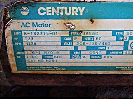 - Si hay varios motores, descripciones de motores frente a especificaciones: (1) 100 hp Teco Electric Motor and (1) 0.5 hp Hydraulic Pump with Century Electric Motor
