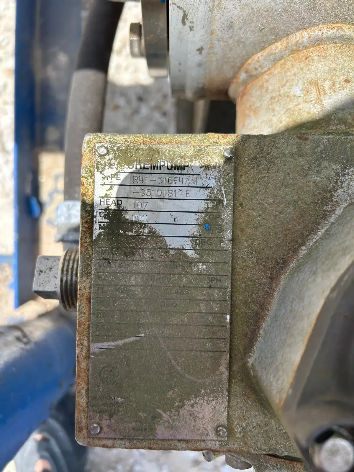 - Descripción(es) de la bomba: Teikoku Ammonia Pump - Model: R41-316F4AM-0510TS1-E, GPM: 100.
