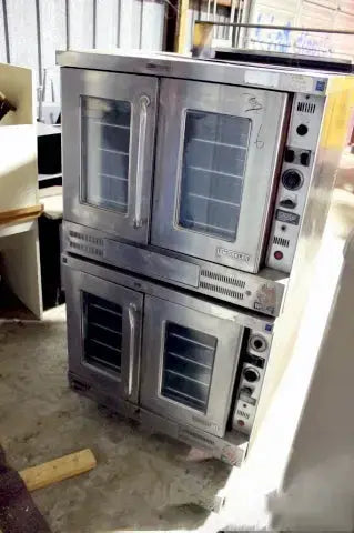 Horno de convección a gas de dos pisos Wolf. Falta la etiqueta, parece ser el modelo WKGD-2. Características estándar paneles de acero inoxidable, quemador de 44,000 BTU/hr por sección, chispa eléctrica, motores de soplador monofásicos de 0,5 HP/120 V/60 Hz, controles de temperatura, temporizador, etc. Dimensiones interiores 29 pulgadas de ancho x 22,125 pulgadas de profundidad x 20 H. Peso estimado de envío: 1,000 lbs. Dimensiones exteriores: 40 pulgadas de ancho x 42,25 pulgadas de profundidad x 70 pulgadas de alto (con patas de 8 pulgadas). (ACN97)