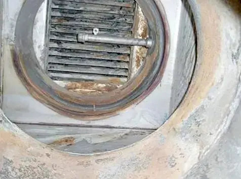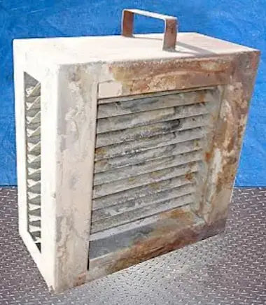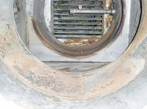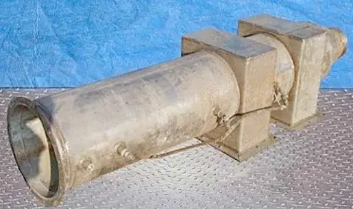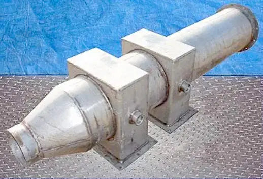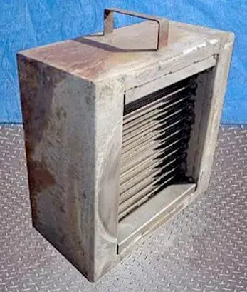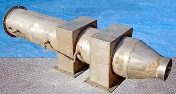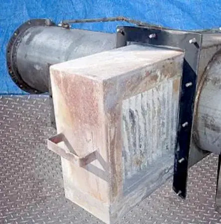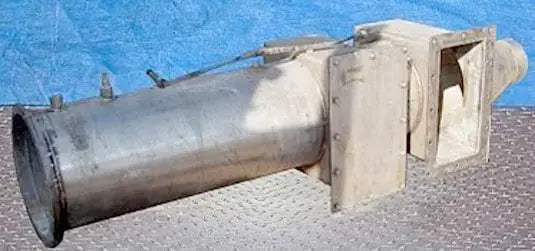 Intercambiador de calor de aletas de placas de acero inoxidable. Número de secciones con aletas extraíbles: 2. Dimensiones de la sección con aletas: 12 pulgadas de largo x 10 pulgadas de ancho. Entradas: (4) 1/2 pulgadas de diámetro. NPT (chorros de pulverización), (1) 14 pulg. de diámetro. Puerto embridado de alimentación. Salidas: (1) 7 pulg. de diámetro. descargar. Dimensiones totales: 1 pie 8-1/2 pulgadas de largo x 1 pie 8-1/2 pulgadas de ancho x 6 pies 6 pulgadas de alto.