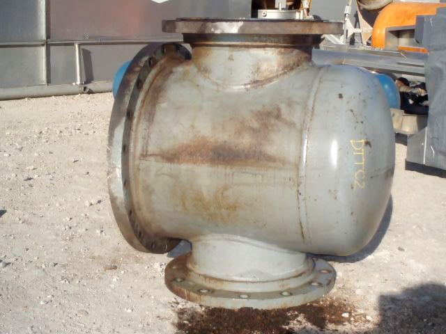 - Descripción de entradas y salidas: Inlets: (1) 13 in. dia. flanged port (product), (1) 10 in. dia. flanged port (media). Outlets: (1) 13 in. dia. flanged port (product), (1) 4 in. dia. flanged port (media)