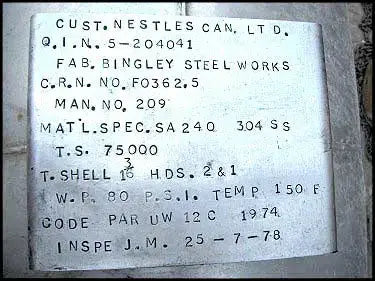 - MAWP (PSI a temperatura): Shell Side: 80 psi @ 150 °F. Tube Side: 50 psi @ 150 °F.