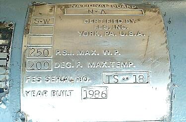 - MAWP (PSI a temperatura): Shell Side: 400 psi @ 200°F. Tube Side: 250 psi at 200 °F