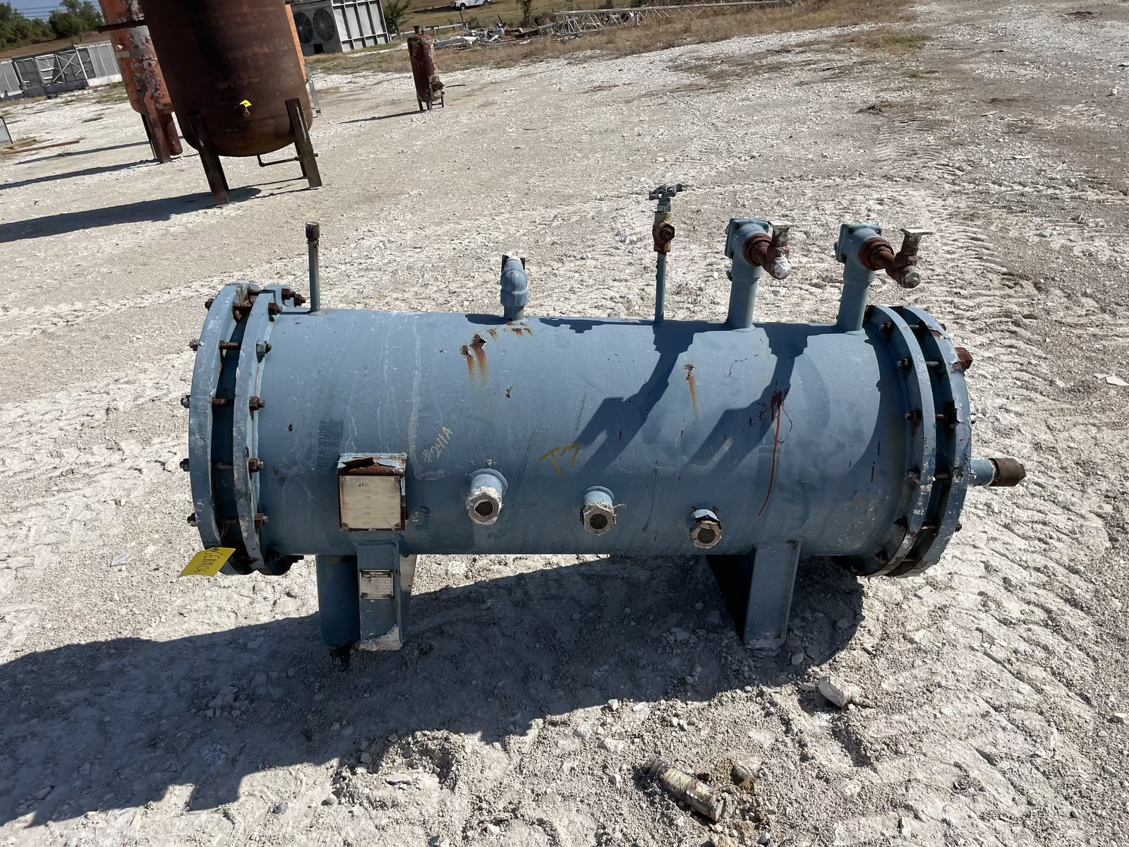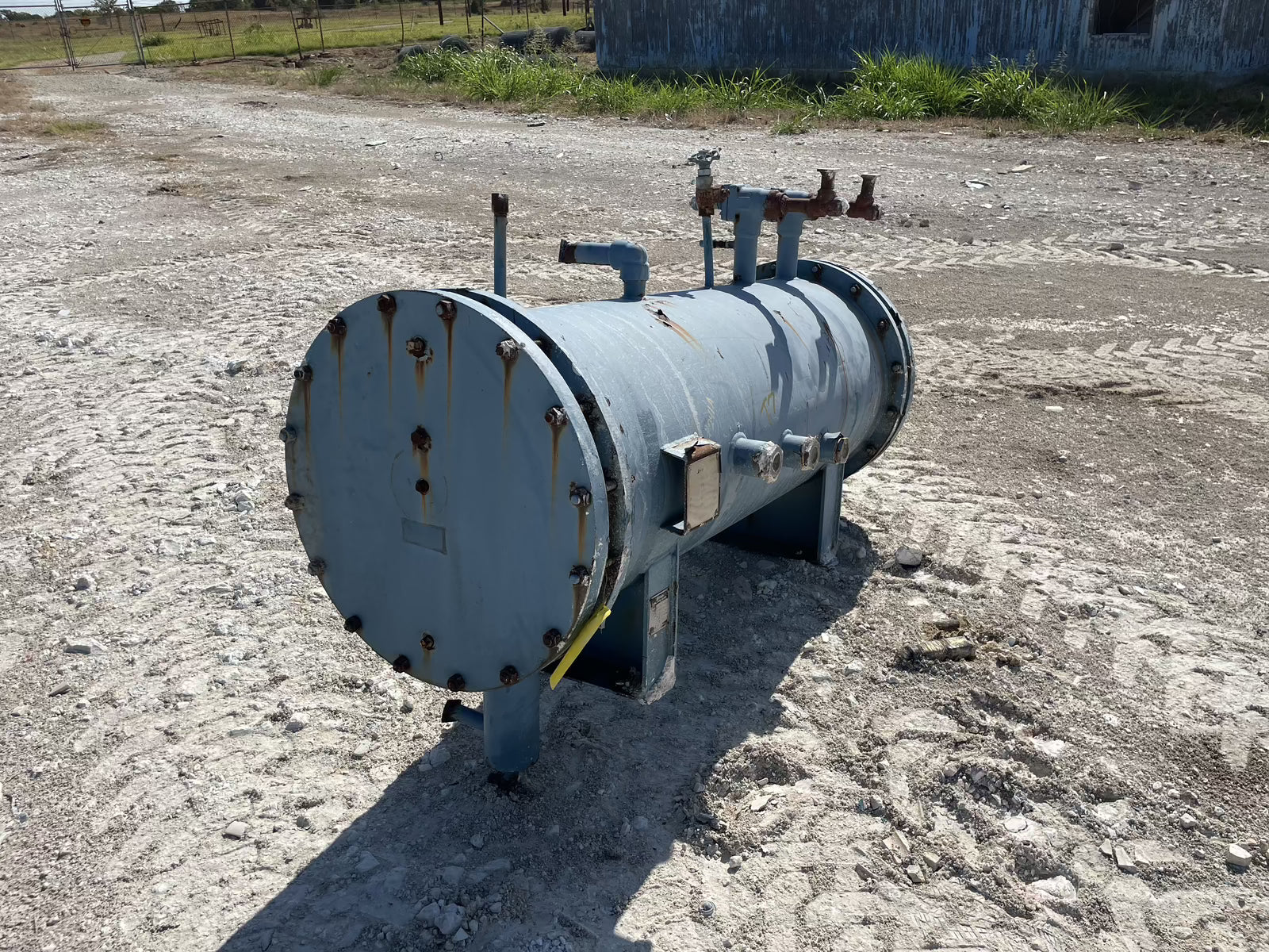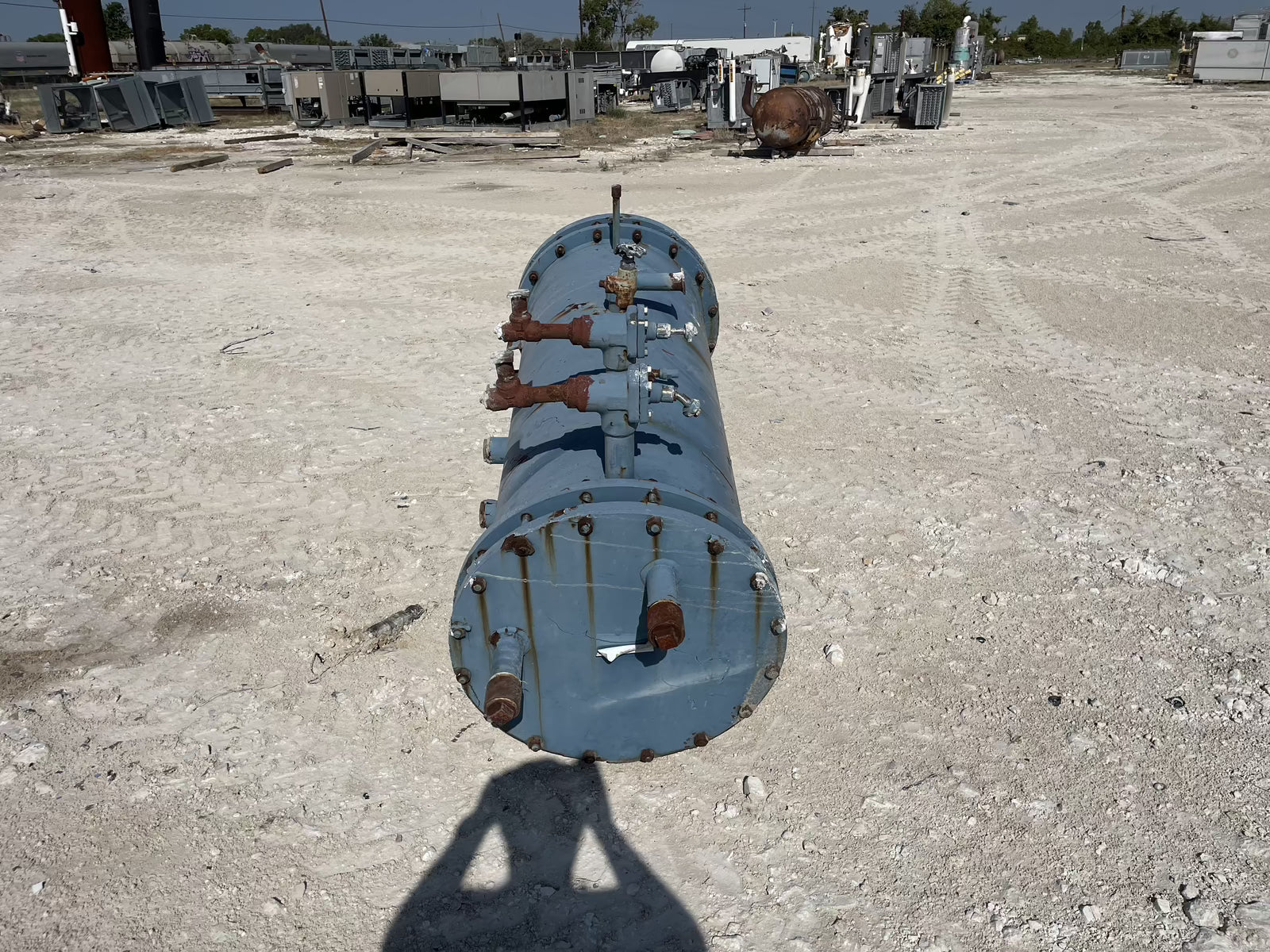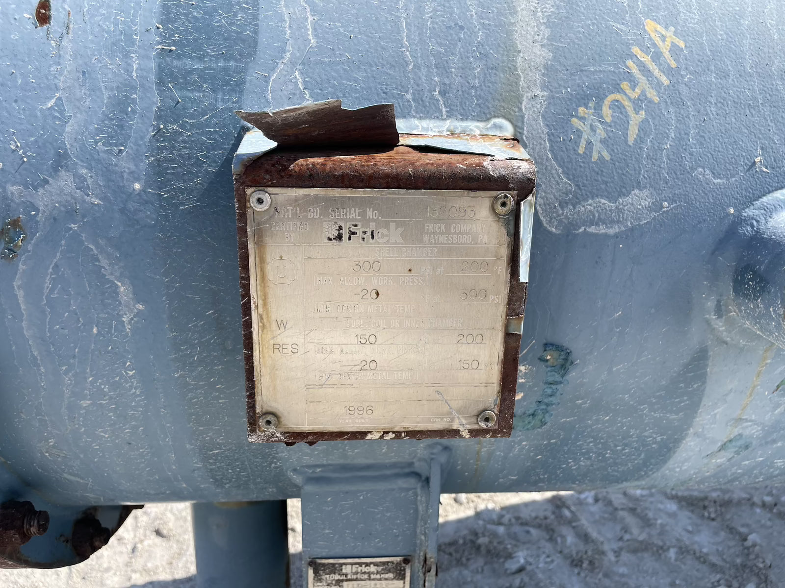 Intercambiador de calor de carcasa y tubos horizontales Frick. 24 pulgadas de diámetro exterior x 60 pulgadas (6 pasadas). Serie: 132093. Número de dibujo: 546D0755. Junta Nacional: 132093. Año de construcción: 1996. MAWP (interno): 300 PSI a 200 F. MDMT: 0 F a 300 PSI. Diámetro del tubo (pulg.): 5/8. Tipo: Recto.