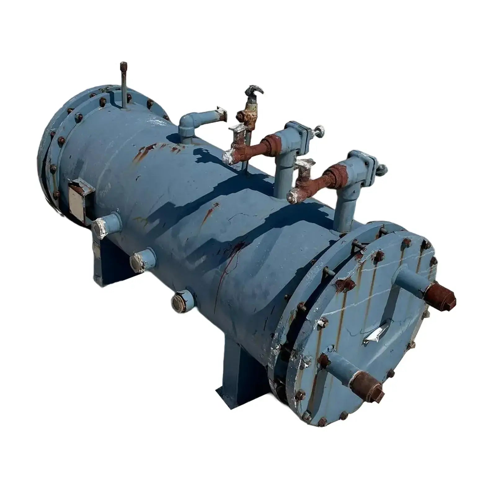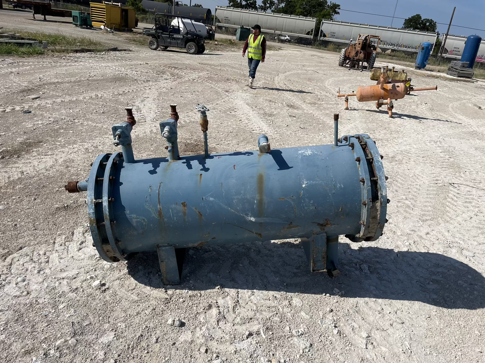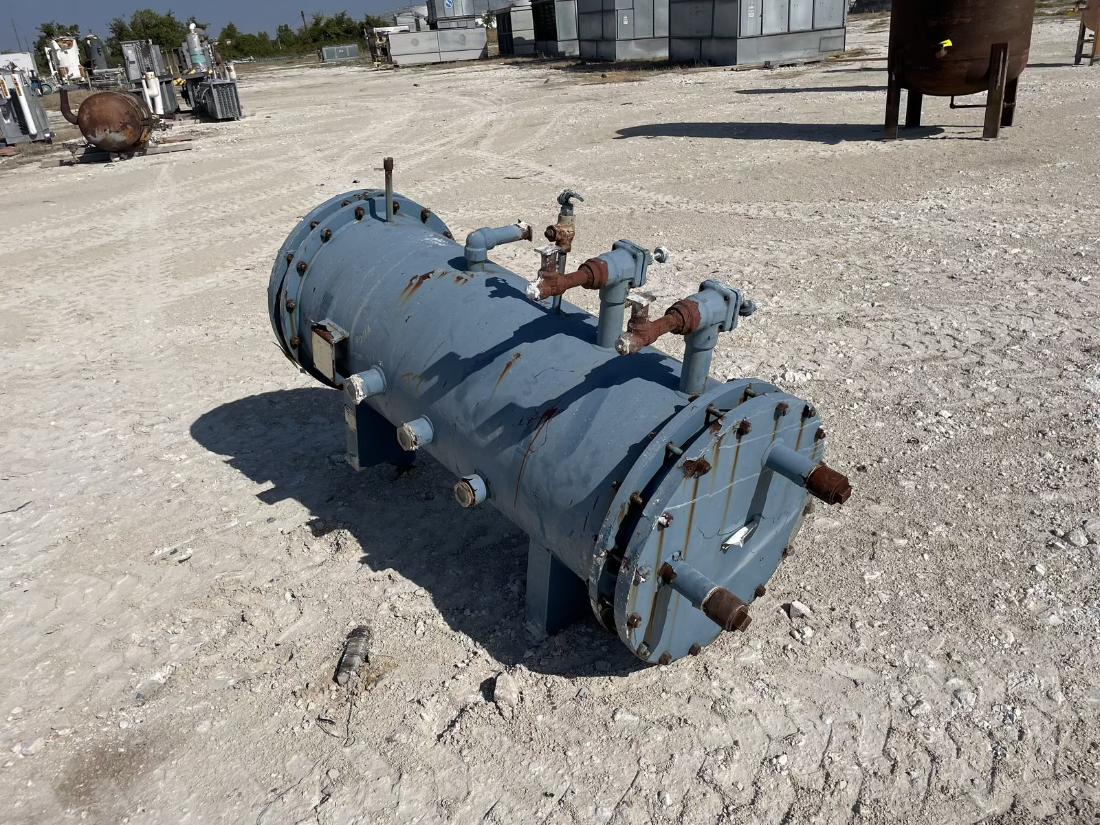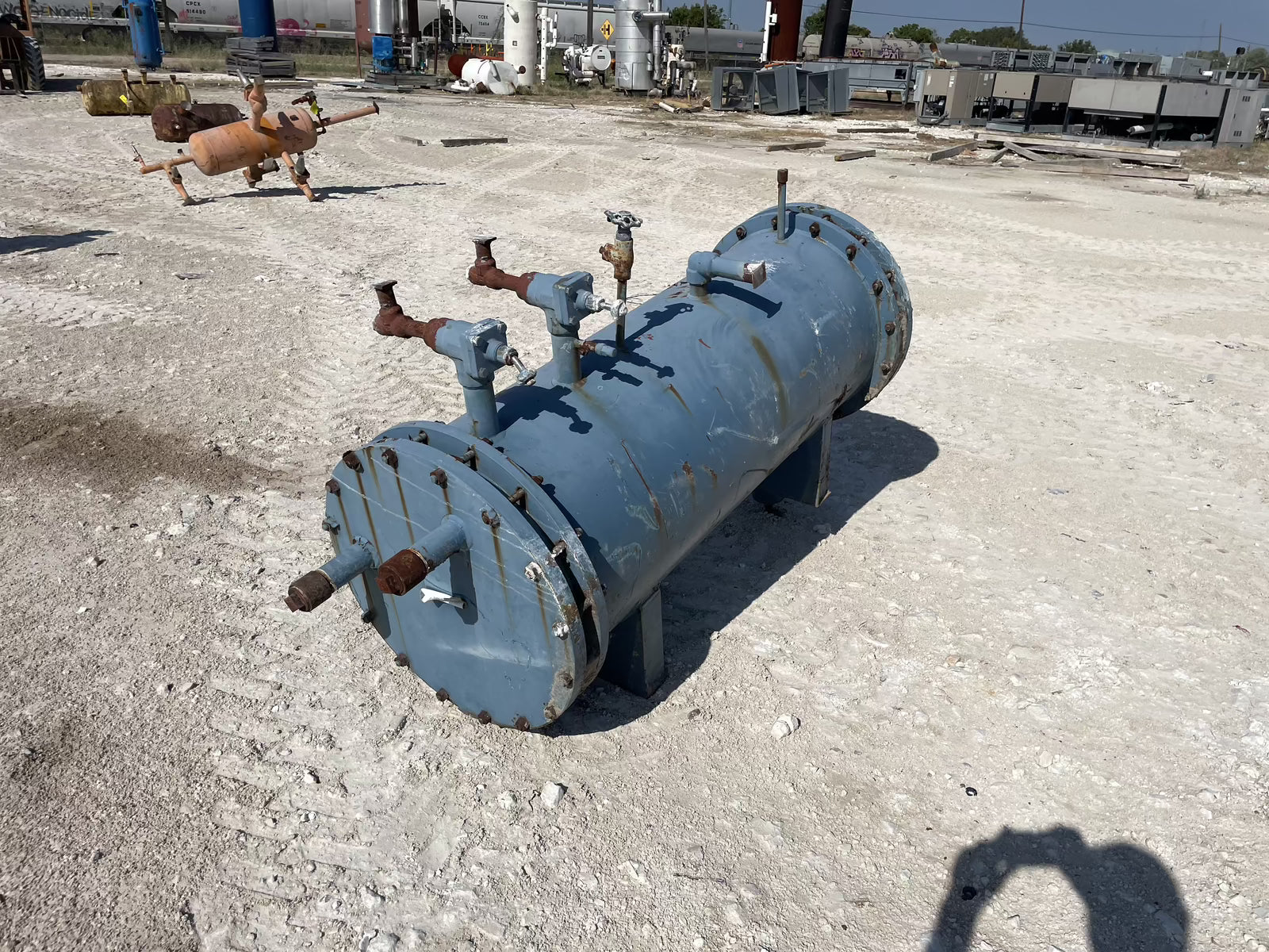 Intercambiador de calor de carcasa y tubos horizontales Frick. 24 pulgadas de diámetro exterior x 60 pulgadas (6 pasadas). Serie: 132093. Número de dibujo: 546D0755. Junta Nacional: 132093. Año de construcción: 1996. MAWP (interno): 300 PSI a 200 F. MDMT: 0 F a 300 PSI. Diámetro del tubo (pulg.): 5/8. Tipo: Recto.
