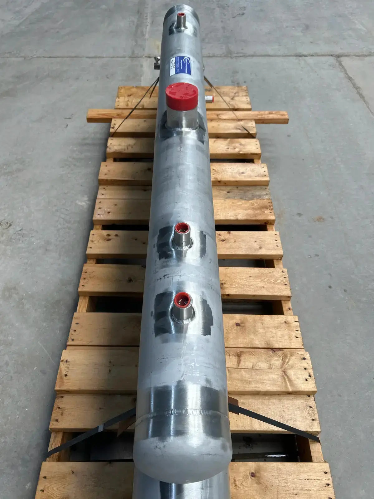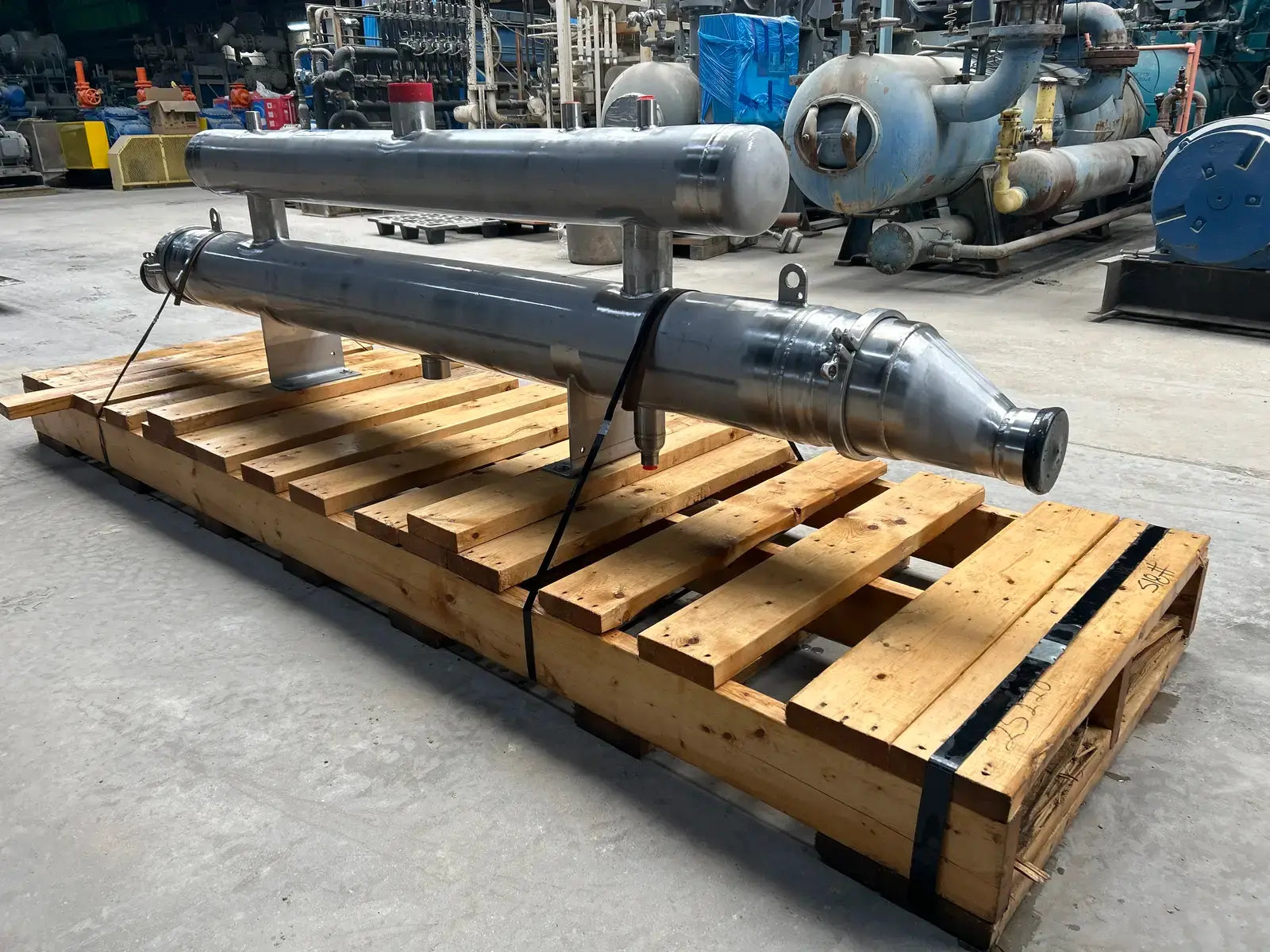- Descripción de entradas y salidas: Tube Inlet/Outlet: 4 inches. Liquid Ammonia Inlet: 1-1/2 NPT. Surge Suction: 3-inch NPS. Shell Drain: 3/4 in NPT.