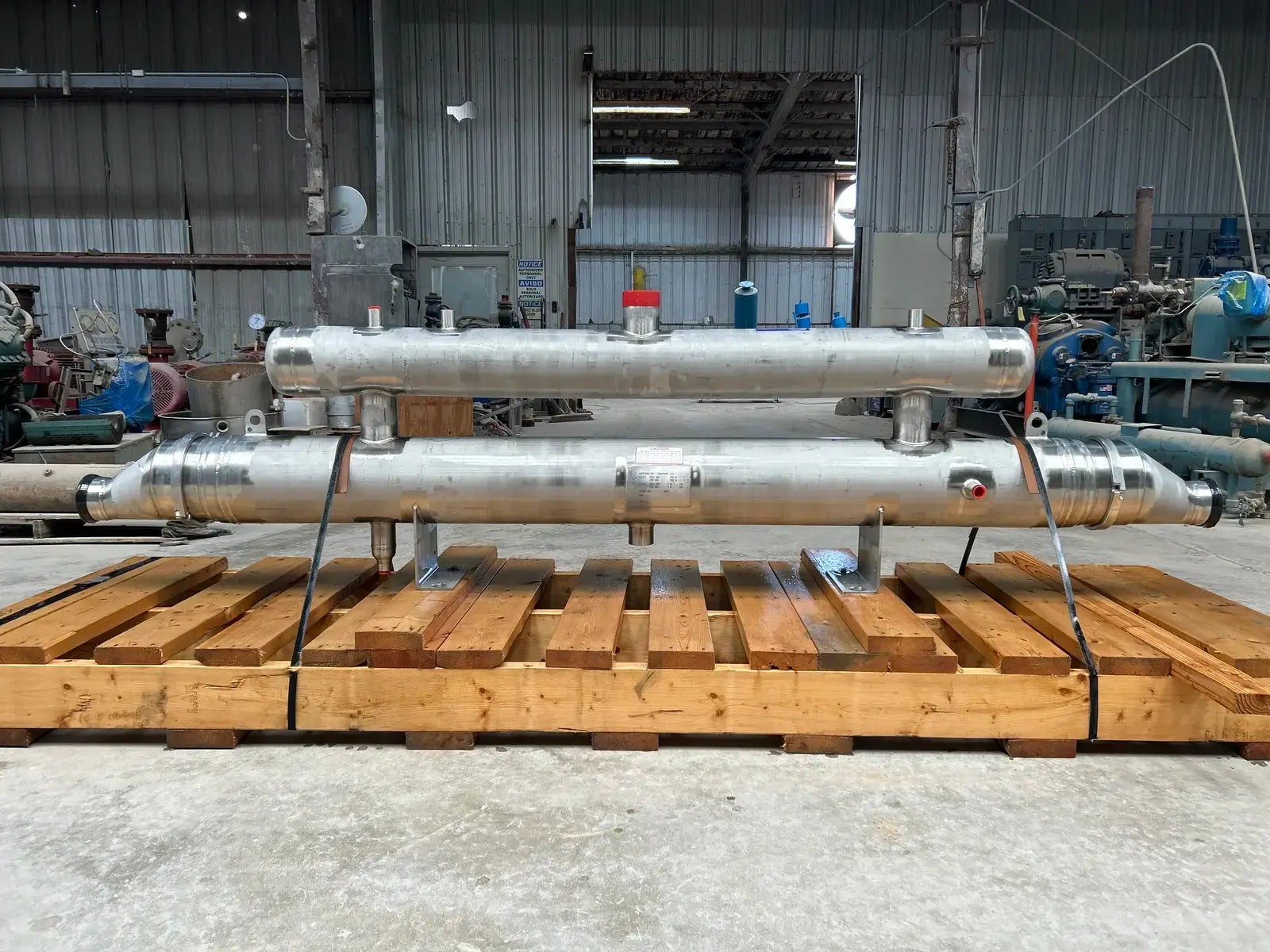 *Nuevo* nunca usado más que para pruebas. Superficie de 92.721 pies cuadrados. Evaporador inundado de amoníaco Enerquip de 10 a 15 toneladas 8x80 con tanque de compensación adjunto. Diseño de flujo de agua de 250-550 gpm. Intercambiador de calor de carcasa y tubos de acero inoxidable 316. 85 tubos de 5/8 de diámetro por 80 de largo. Tablero nacional del lado de la carcasa # 23691. Número de serie 26083. 5- Conexiones 3/4 npt. 1-4 entradas/salidas soldables. Entrada/salida inferior de 2 npt. Fabricado en 2020. Dimensiones de envío: 118'' x 34'' x 36''. 518 libras.