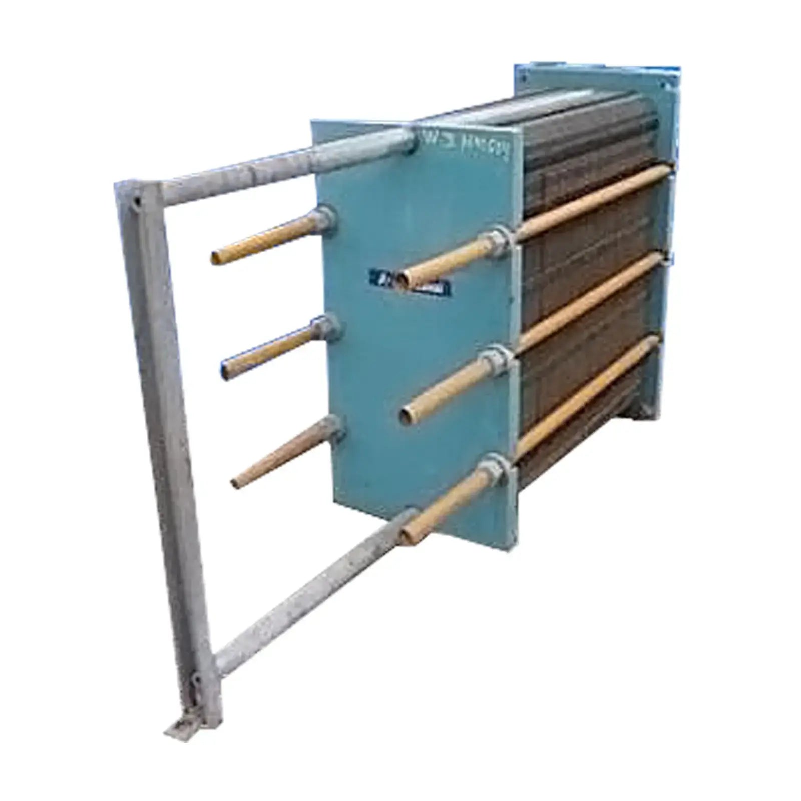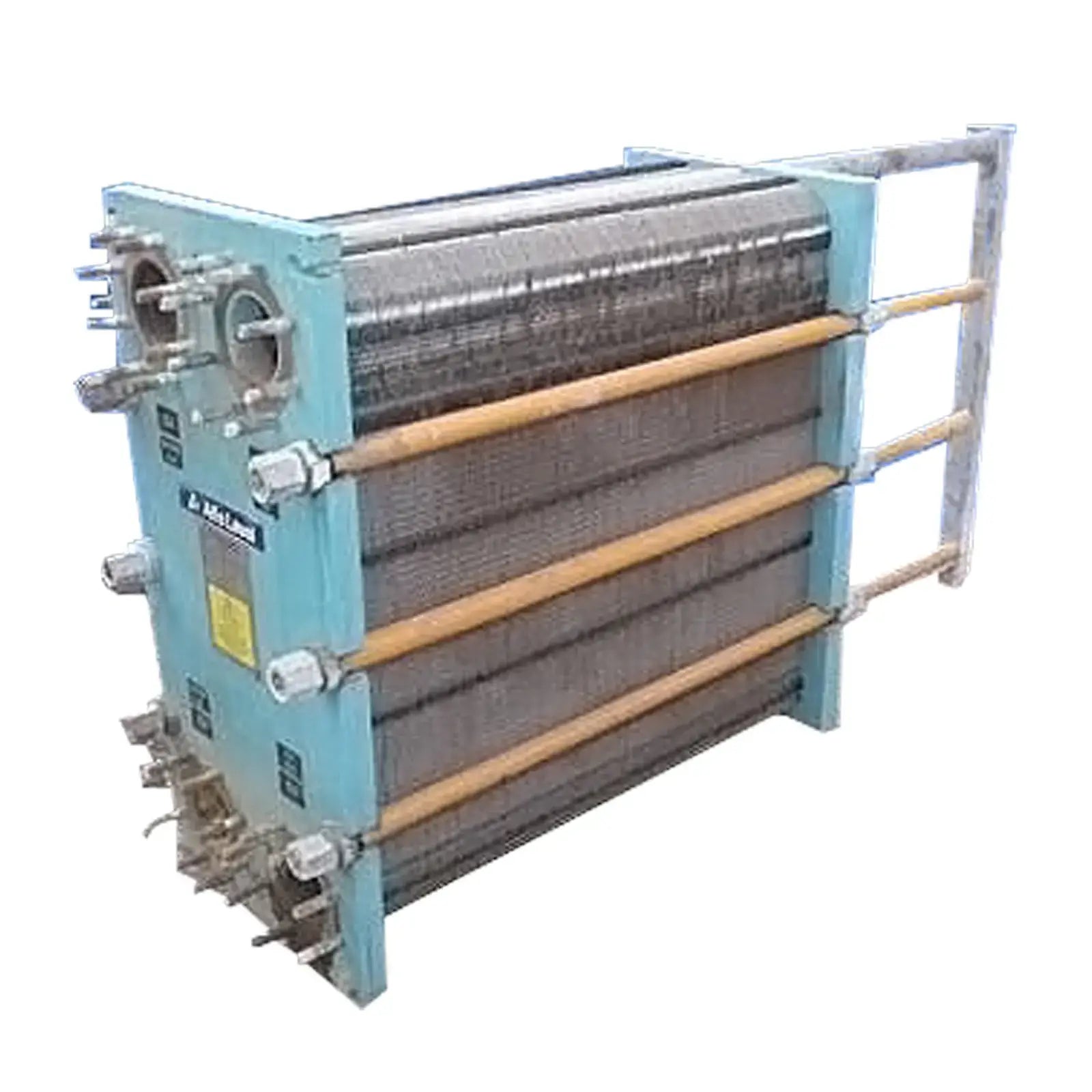 1996 Intercambiador de calor de placas Alfa Laval. Modelo: M10-BFG. Número de serie: 30101-40939. Número de placas: 277. Superficie de transferencia de calor: Aproximadamente: 780 pies cuadrados. MAWP: 149 psi a 275 °F. Volumen: 48 galones. Entradas/salidas: (4) 4 pulg. de diámetro. puertos. Dimensiones totales: 6 pies 1 pulg. de largo x 1 pie 6-1/2 pulg. de ancho x 3 pies 2-1/2 pulg. de alto (ACN329). (SOLDADO AMERICANO).