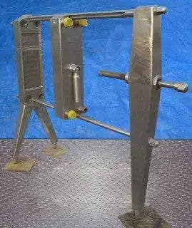 Intercambiador de calor de placas de flujo paralelo APV. Modelo: HX, S/N: MC 12779. Clasificación sanitaria 3-A. Presión de diseño: máx. 100 psi. Puertos de extremos fijos: (4) 2 pulgadas. Puertos de extremos móviles: (4) 2 pulgadas. Dimensiones totales: 71 pulgadas de largo x 24 pulgadas de ancho x 61 pulgadas de alto.