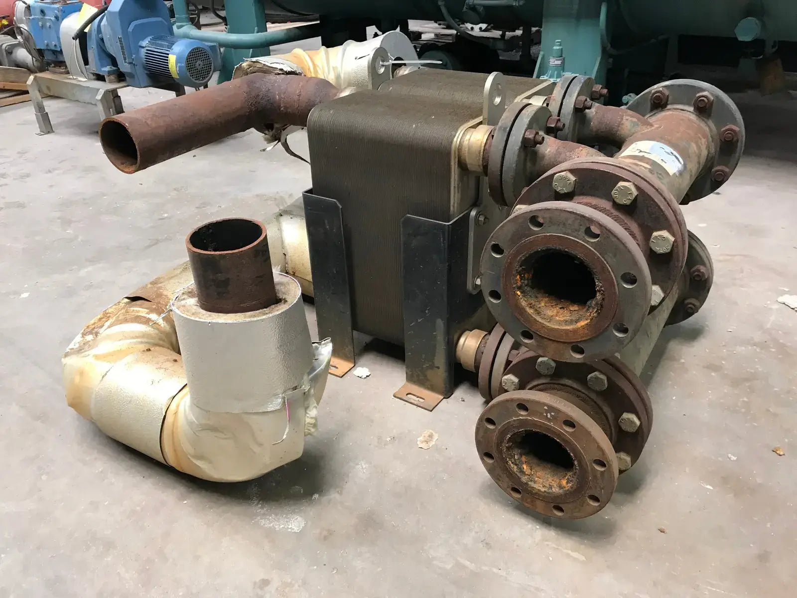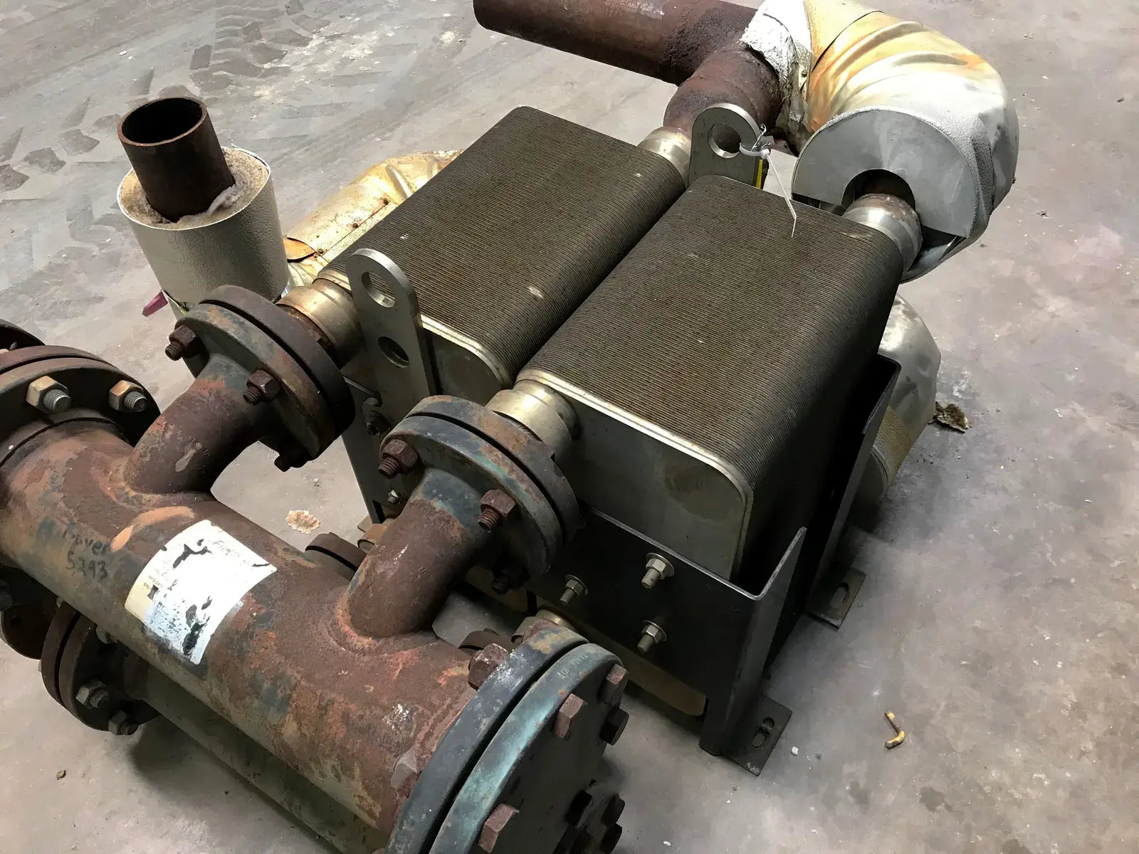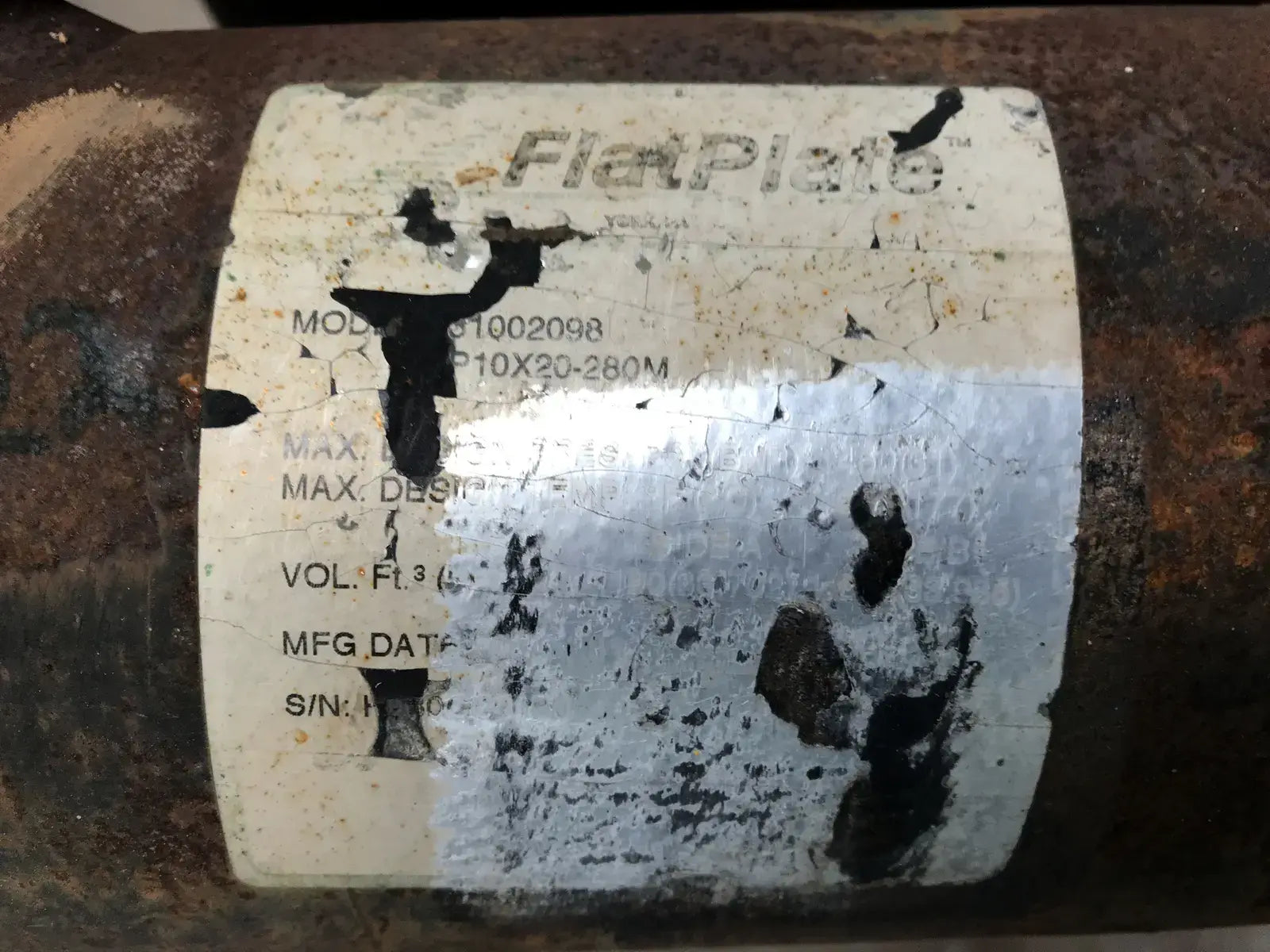 Intercambiador de calor de placas soldadas FlatPlate usado. Serie 3100. Modelo: 31002098. Serie: P10X20-280M. Presión máxima de diseño: 450 PSI / 31 Bar. Temperatura máxima de diseño 190F / 33,7C (lado A). Fecha de fabricación: 01.08.31.