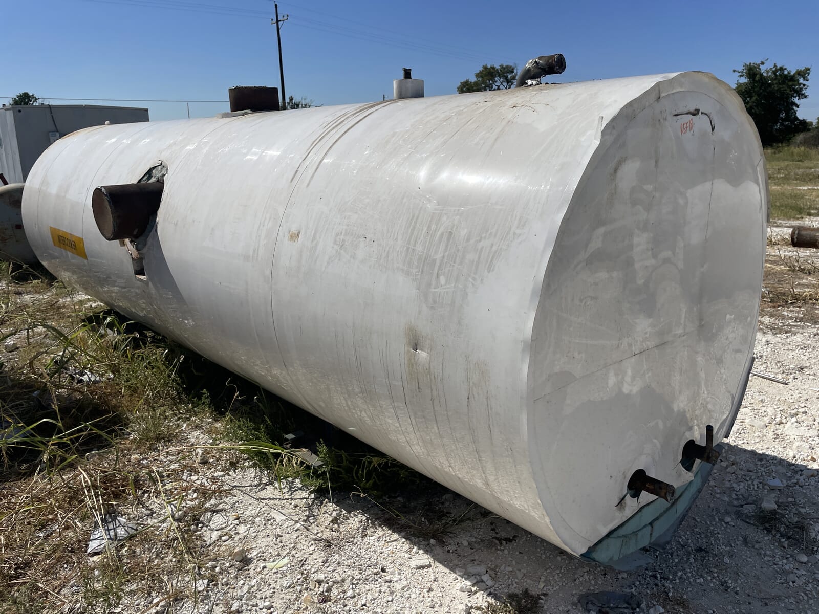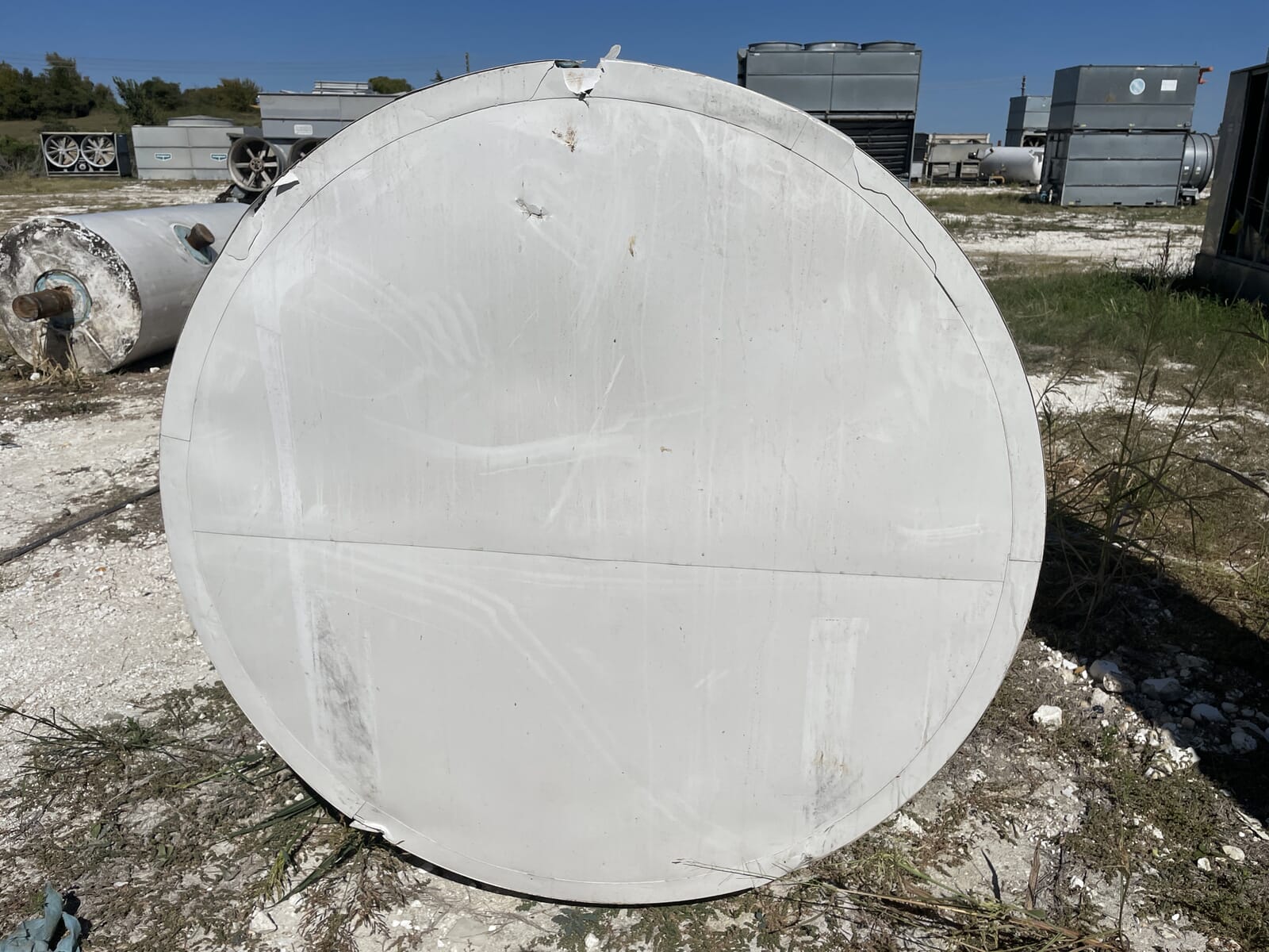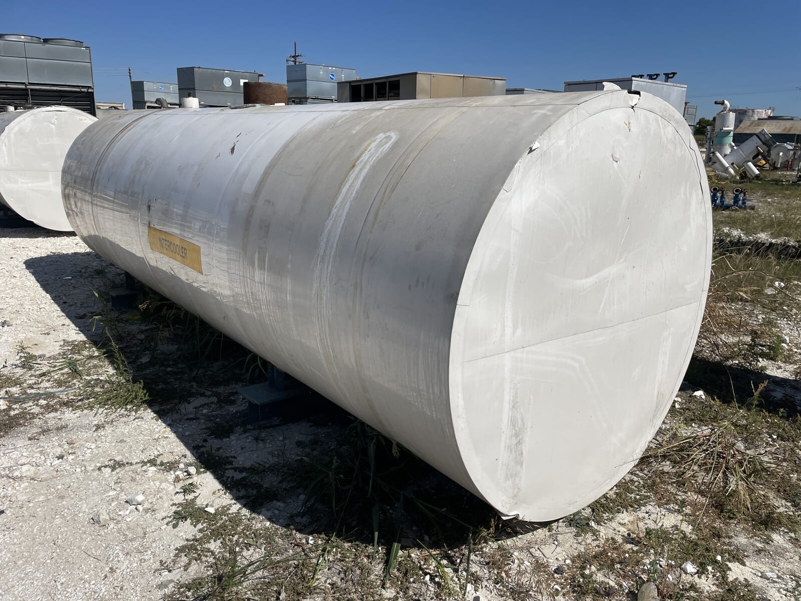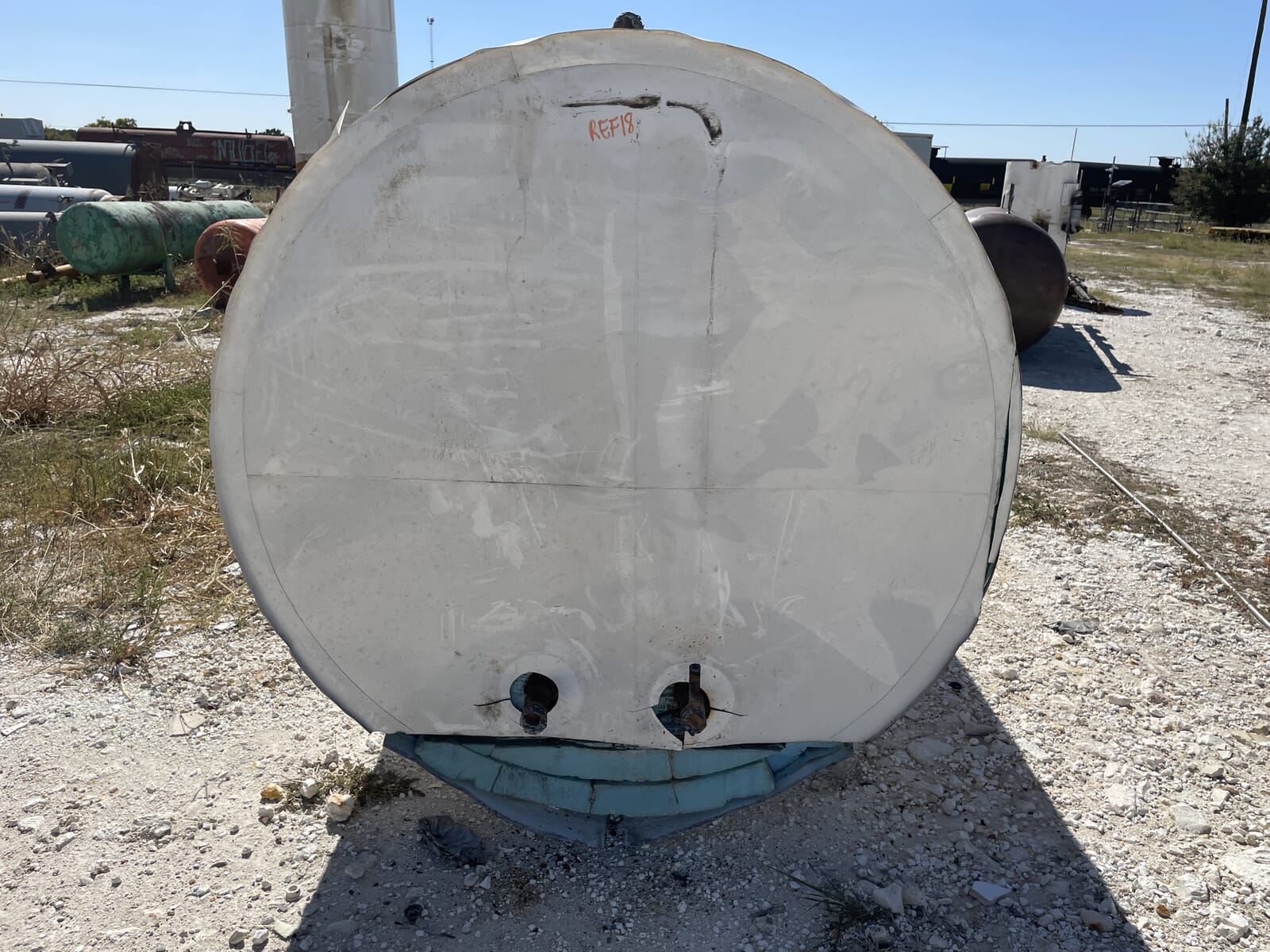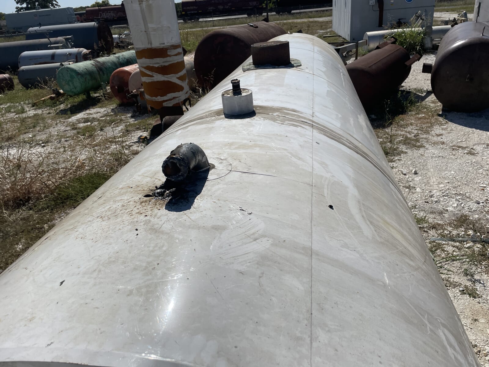 Intercooler horizontal con intercambiador de calor de precisión. Número de serie: 11421-2. Año de construcción: 1987. Presión de trabajo máxima permitida: 225 PSI a 200 F. Dimensiones estimadas del recipiente: 52 diámetro x 203 L. Capacidad estimada: 2185 galones.