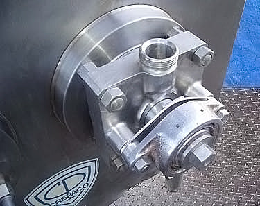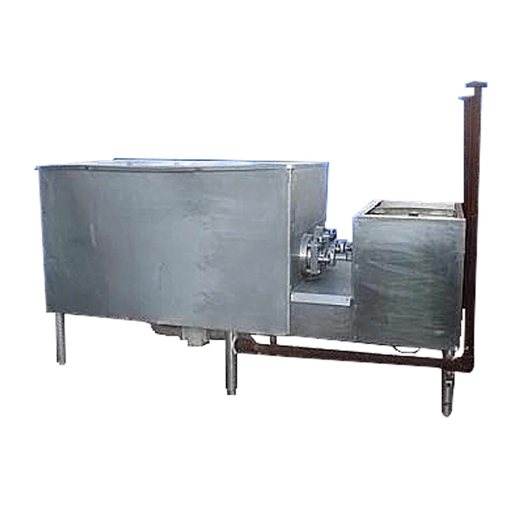 Intercambiador de calor de superficie barrida Crepaco Rota-Pro. Número de serie: C-7850 (2HD672). Número de pedido: 39-36378. Dwg. Nº: 12B-P-385695. Área de superficie de calentamiento: 18 pies cuadrados. Se proporcionan camisas de cilindro ASME estándar para calentar con agua o vapor hasta 450 °F o enfriar con agua, salmuera, glicol u otros medios líquidos adecuados. Dimensiones del cilindro interior: 6 pulgadas de diámetro x 71 pulgadas de largo. Cilindro interior: acabado cromado sobre un cilindro de níquel. (36) Cuchillas raspadoras: 7-3/4 pulg. de largo x 3/4 pulg. de ancho. Los raspadores giratorios, con cuchillas raspadoras fijas, barren continuamente la superficie del cilindro para limpiar el producto, produciendo simultáneamente un nivel altamente deseable de mezcla y agitación del producto que contribuye a la consistencia en la identidad del producto final. Motor eléctrico Reliance, 15 hp, 1760 rpm, 230/460 V, 40-20 amperios, 60 Hz, trifásico. Entradas: (2) 1-1/2 pulg. de diámetro. accesorios roscados, (1) 2 pulg. de diámetro. Puerto de medios con una brida cuadrada de 5 pulgadas de largo x 5 pulgadas de ancho que tiene (4) 5/8 pulgadas de diámetro. orificios de conexión a una distancia de centro a centro de 3 pulg. Salidas: (2) 1-1/2 pulg. accesorios roscados, (1) 2 pulg. de diámetro. Puerto de medios con una brida cuadrada de 5 pulgadas de largo x 5 pulgadas de ancho que tiene (4) 5/8 pulgadas de diámetro. orificios de fijación a una distancia de centro a centro de 3 pulgadas. Dimensiones totales: 9 pies 4 pulgadas de largo x 44 pulgadas de ancho x 72-1/2 pulgadas de alto.